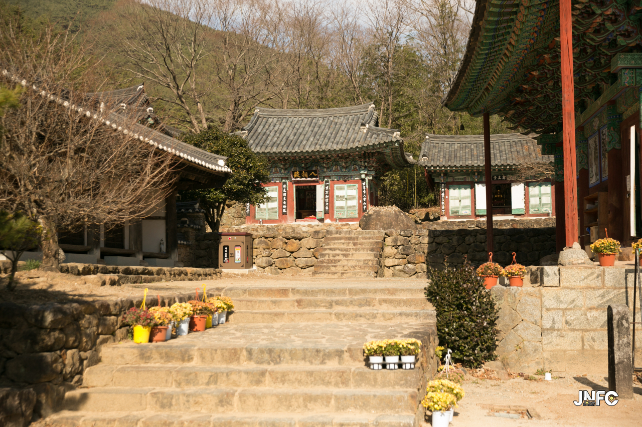 지리산 노고단으로 올라가는 길에 위치한 사찰로 앞에 넓은 저수지가 위치하고 있어 산책로가 조성되어 있다.