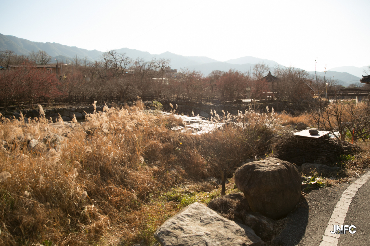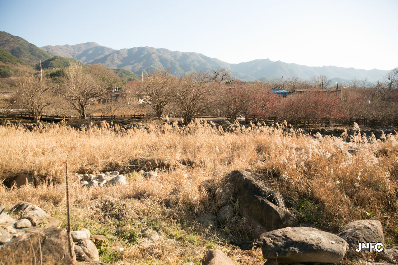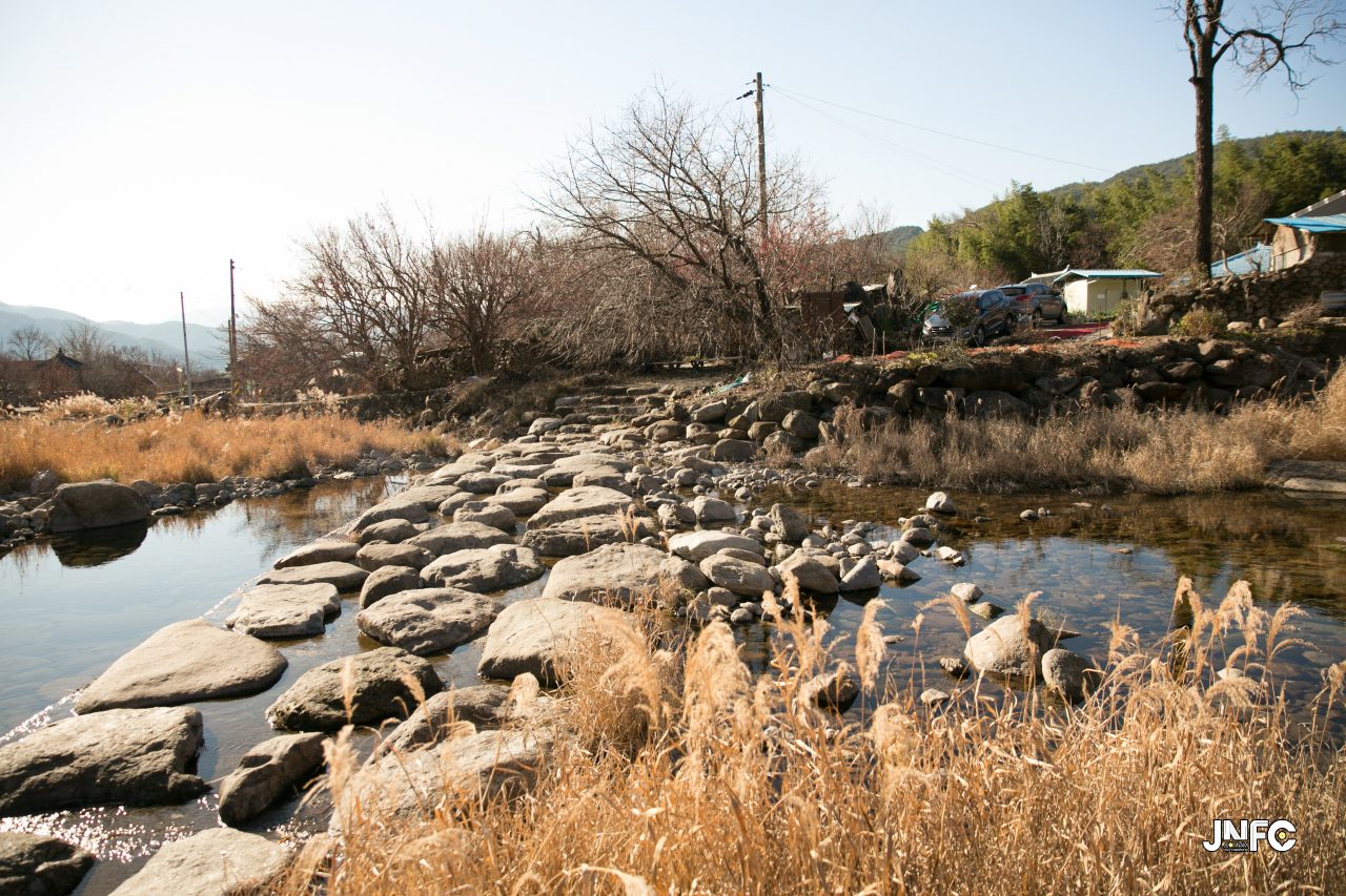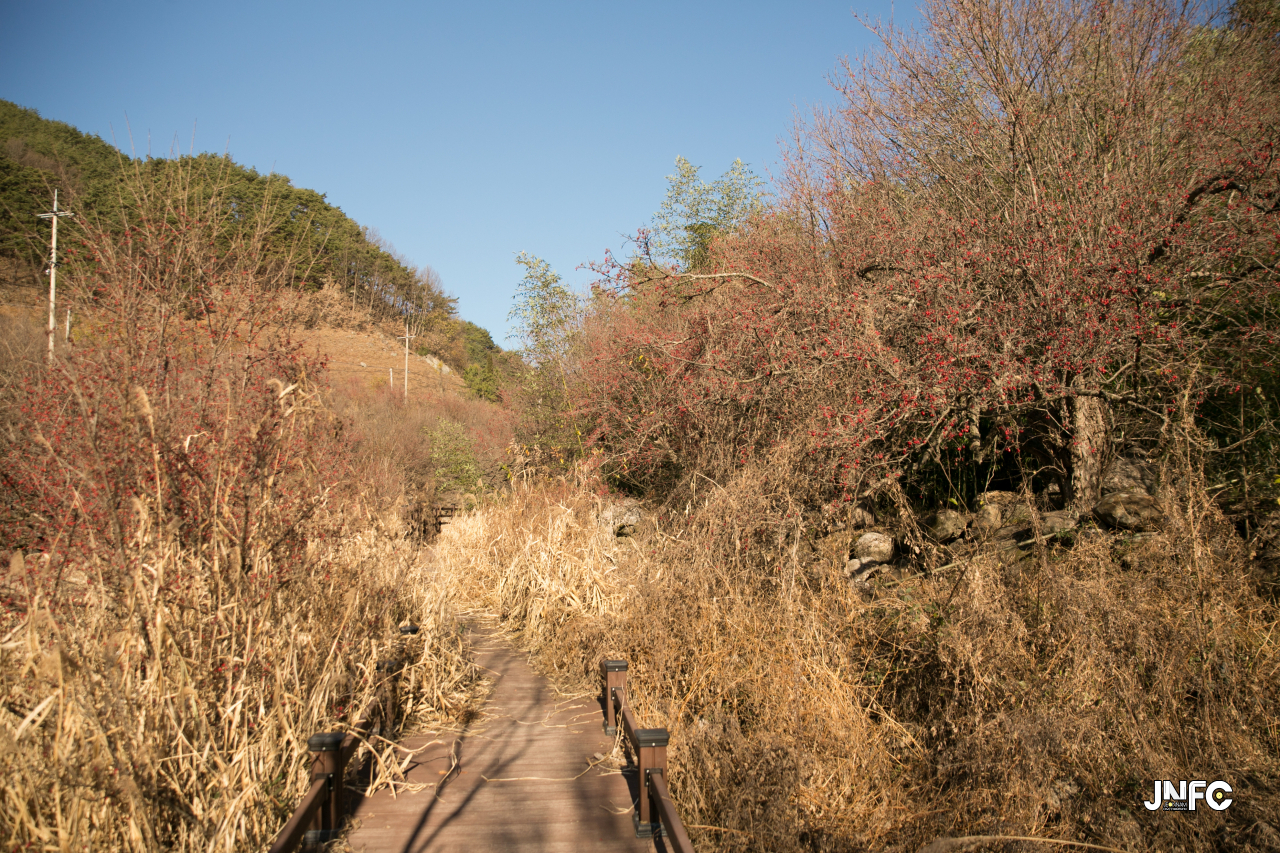 산수유 축제가 열리는 마을로 천변 옆을 따라 데크길이 놓여 있고, 바위사이로 흐르는 계곡물을 감상할 수 있다.