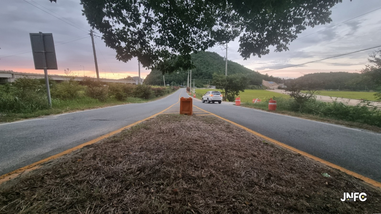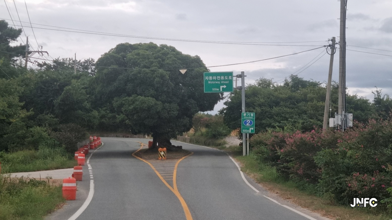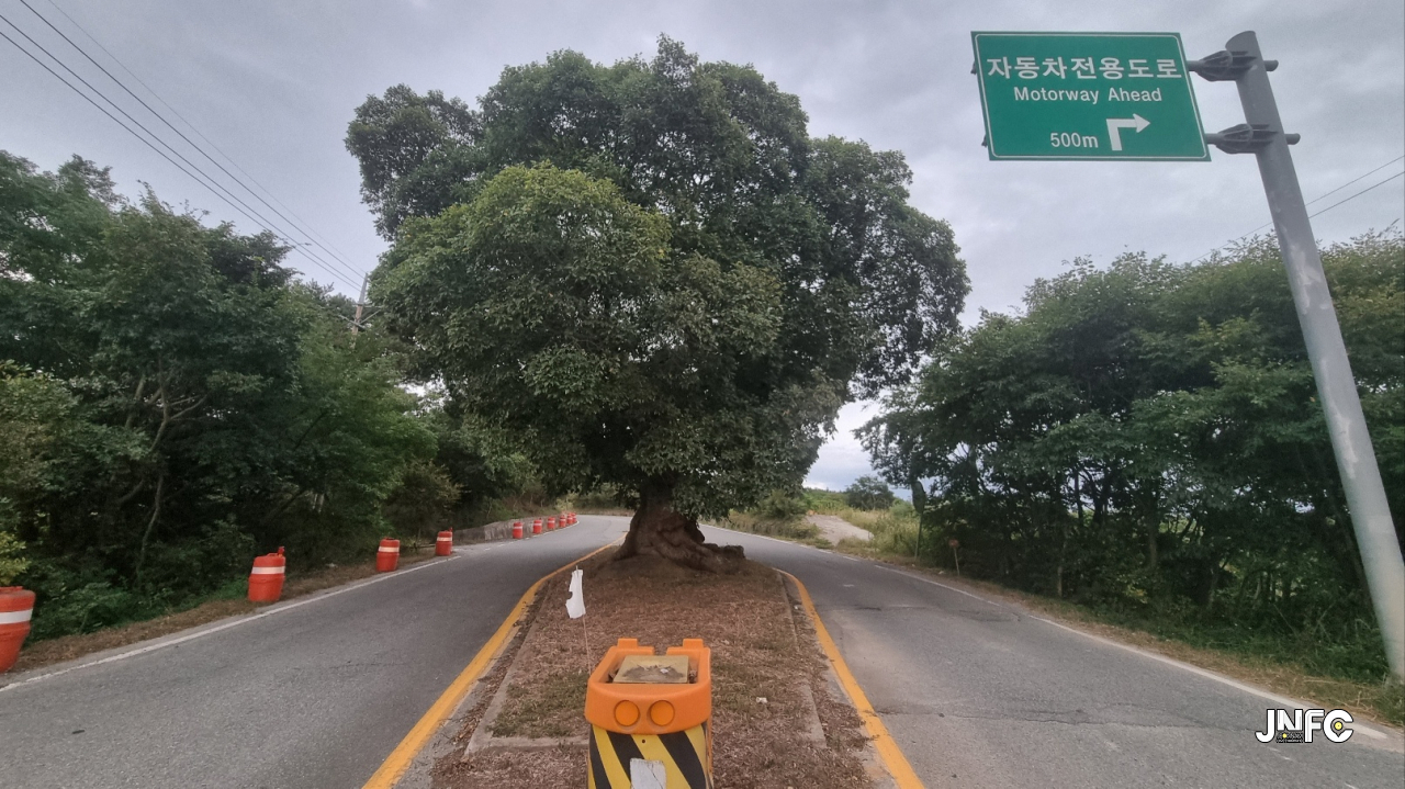 학산면에 위치한 장소로 도로 중앙에 오래된 수령의 나무가 위치한 것이 특징인 장소이다.