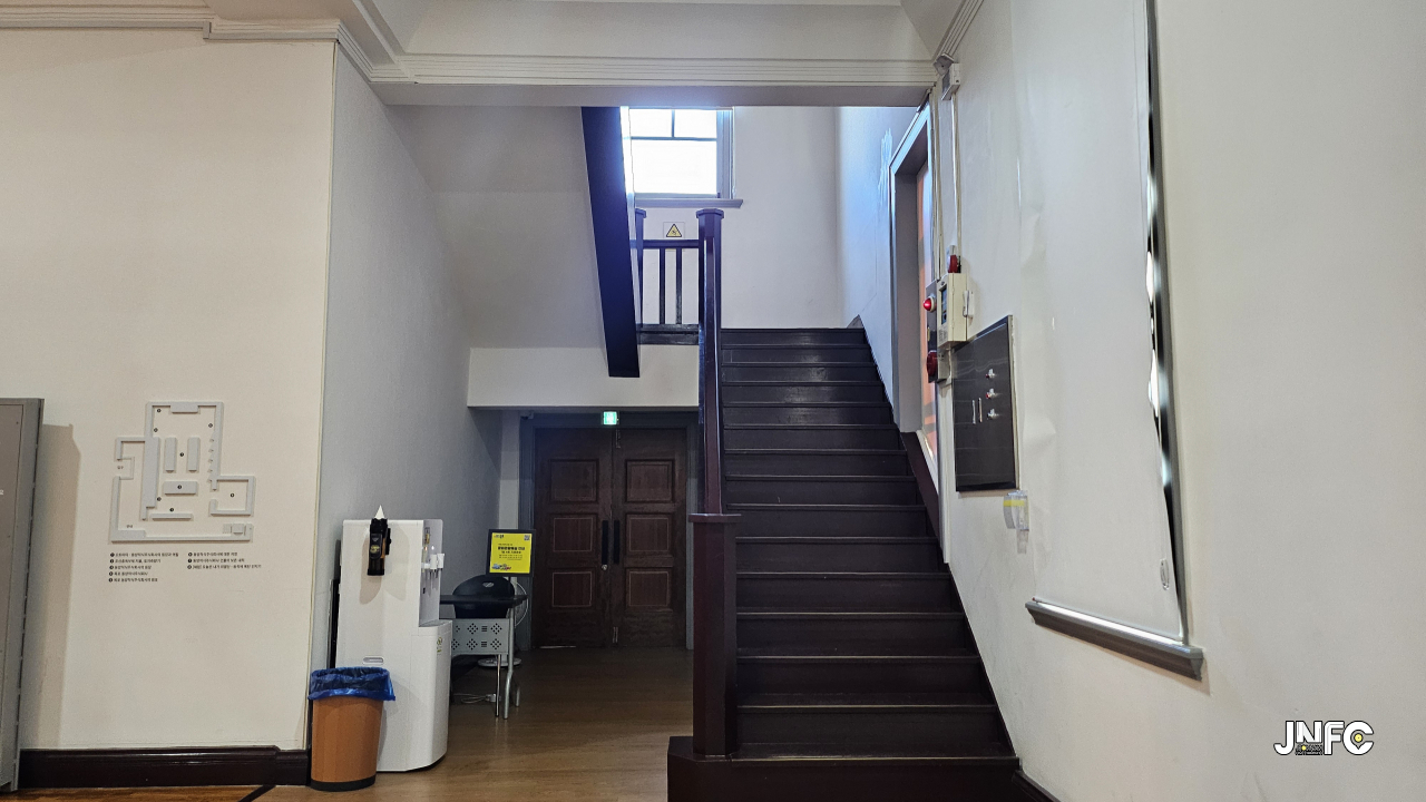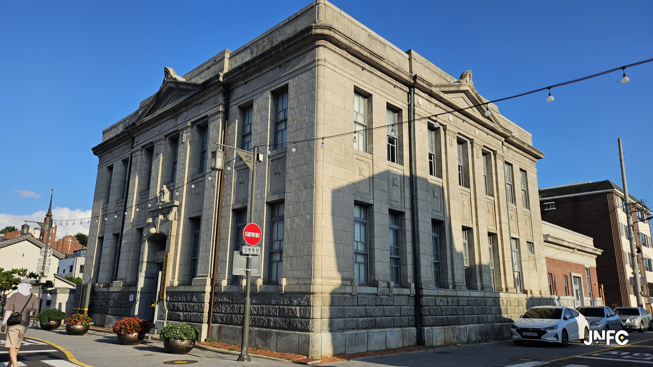 구 동양척식주식회사였던 이 건물의 건축양식은 후기 르네상스 양식에 장방형 평면의 2층석조 건물로 일본을 상징하는 모양이 여러곳에 새겨져 있는데 정문 입구에 태양문양, 좌측 상단부 벚꽃모양과 건물 내부 1층 벽면에 장식된 타영문양 등이 있다.