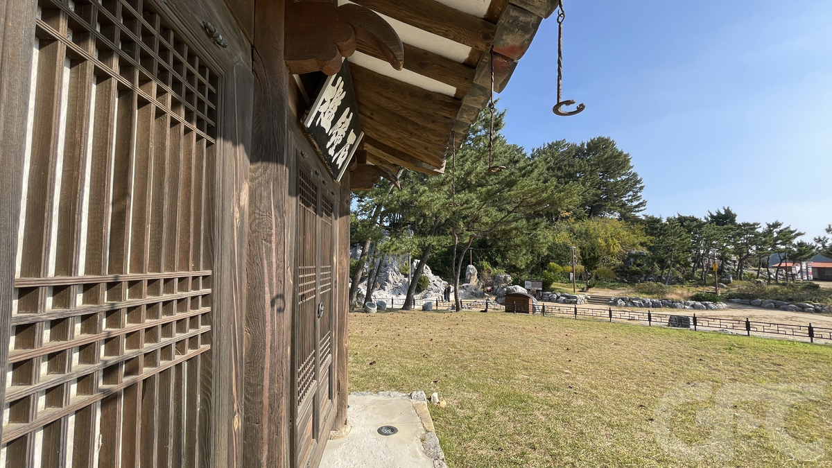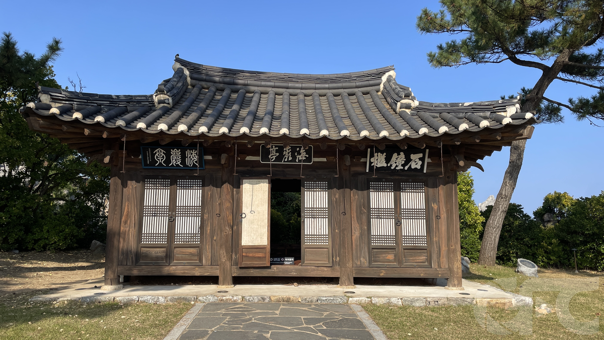 해암정 뒤로는 바위밖에 안보이나, 옆과 앞으로는 현대 건축물이 잘 보여 사극 촬영에 제약이 있어보인다.