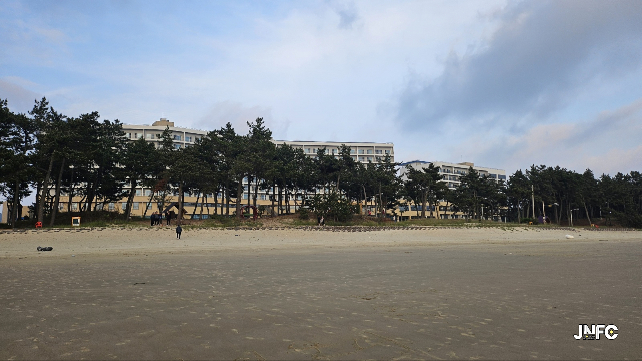 리조트 앞에 있는 해변으로 넓게 뻗은 모래사장이 특징인 장소이다.