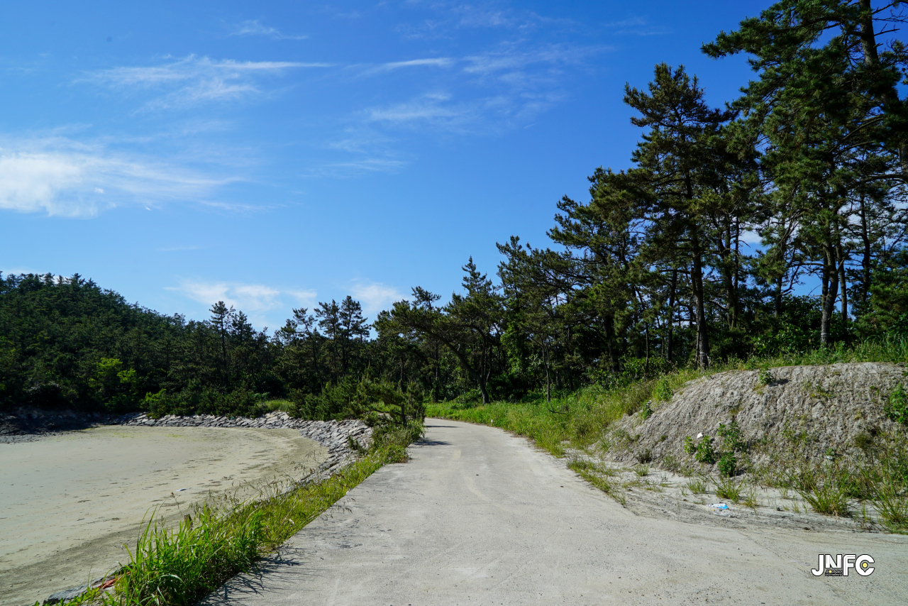 70m의 거리를 두고 양쪽으로 해변이 있는 특이한 지형의 해변이다.