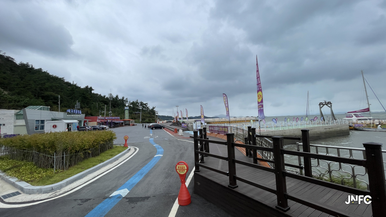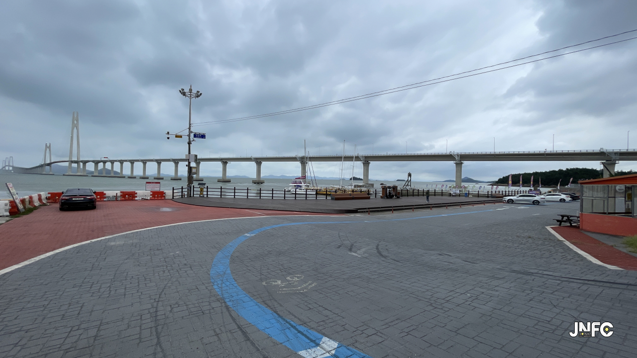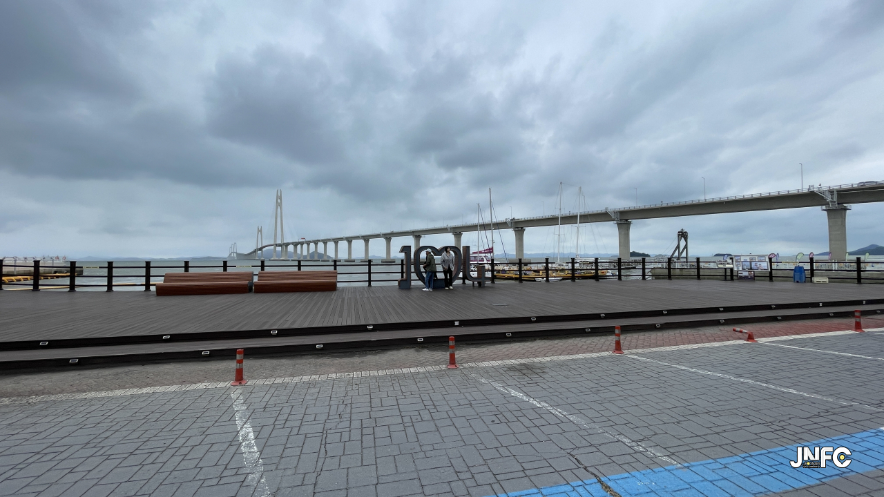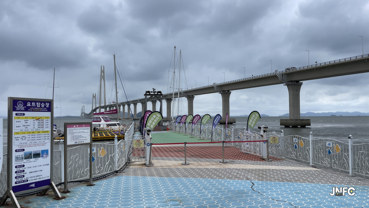 요트를 탈 수 있는 선착장으로 서쪽 방향에서 동쪽으로 천사대교를 조망할 수 있다.