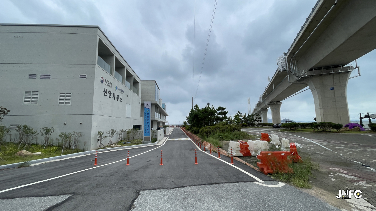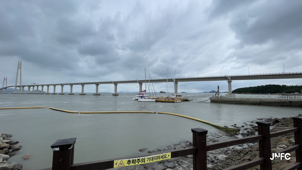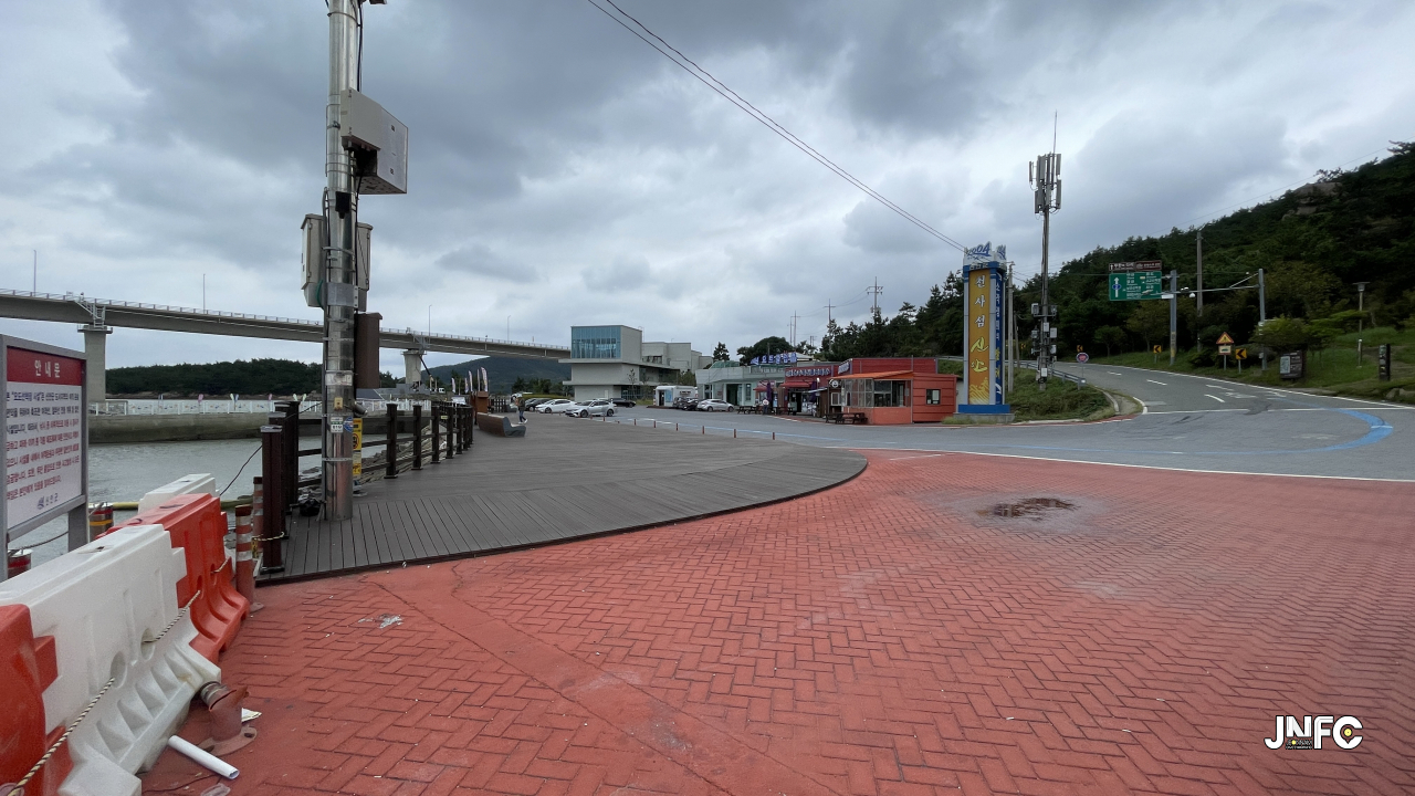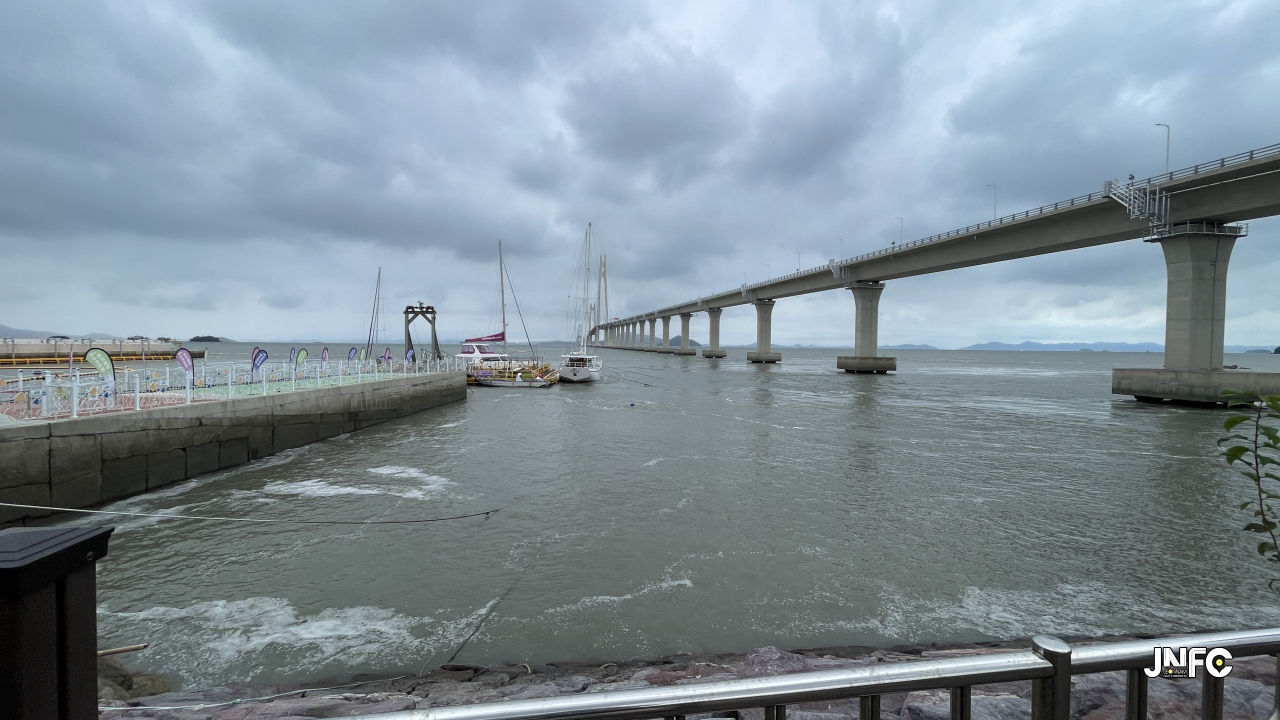 요트를 탈 수 있는 선착장으로 서쪽 방향에서 동쪽으로 천사대교를 조망할 수 있다.