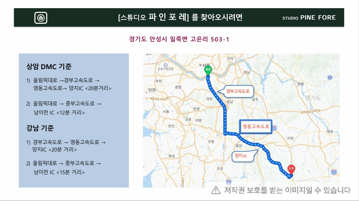 스튜디오파인포레는 안성시 일죽면에 위치해 있으며,