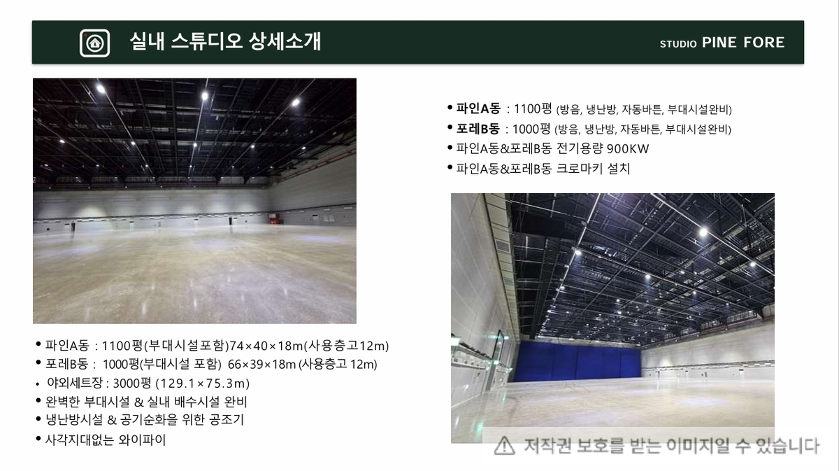 넓은면적과 높은층고는 다양한 콘셉트의 대형세트를 구현할수있는
