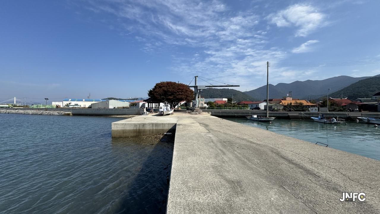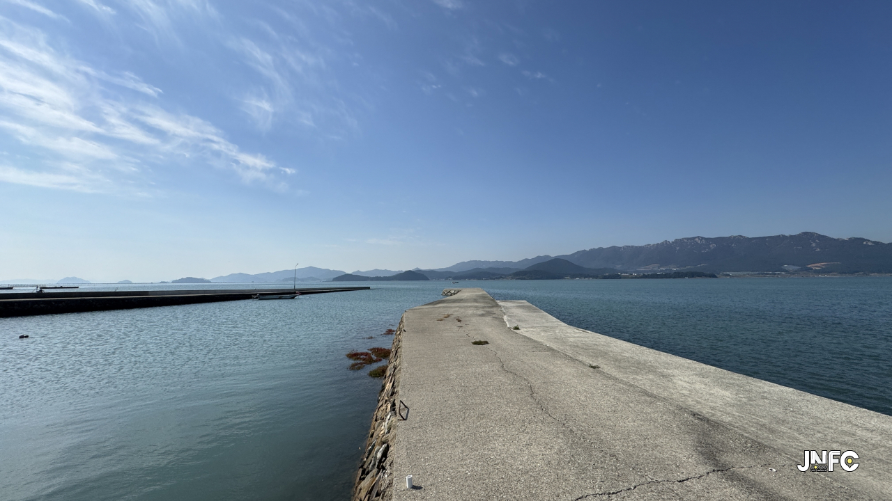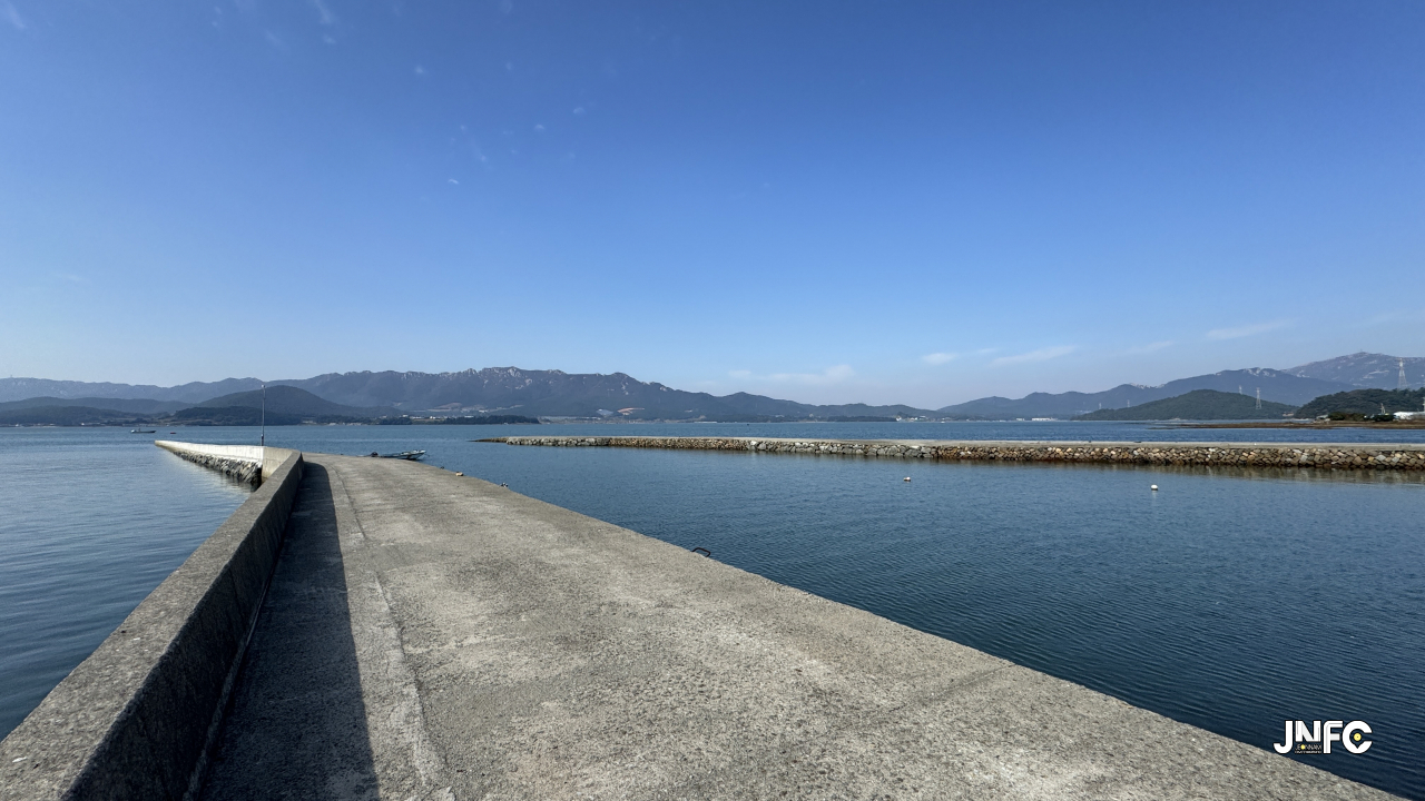 삼지창 모양으로 세갈래로 나와 있는 형태가 특이한 방파제.