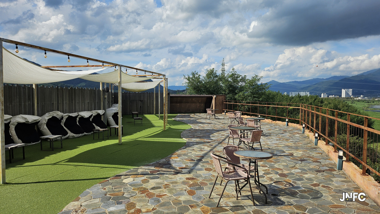 루프탑에도 빈백과 테이블이 있다.