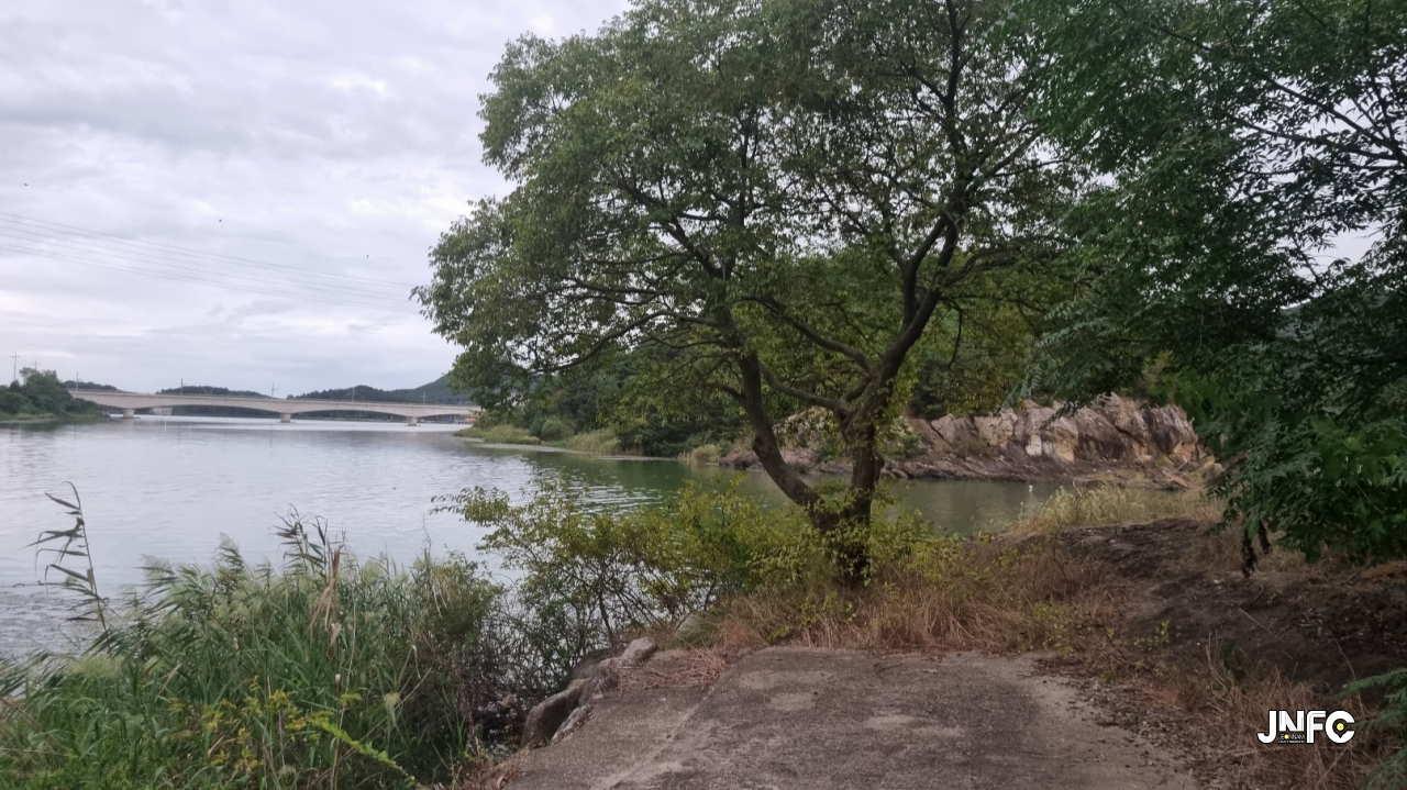 영산강변의 나루터로 나루터 끝자락에 나무가 서있고 그 앞에 가래섬이 위치해 있다.