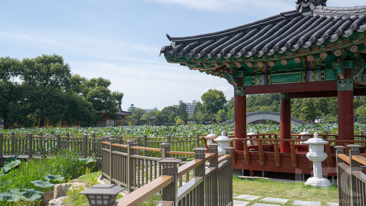 전주 덕진공원은 전주시 덕진구 권삼득로 390에 위치한 도심 속 시민공원으로, 넓은 인공호수 덕진호와 연꽃 군락지로 유명합니다. 공원은 전통 한옥 형태로 재건축된 연화정도서관과 연화교를 중심으로 자연친화적인 산책로와 휴식 공간을 제공합니다. 음악분수와 연꽃 풍경이 특히 여름철과 야간에 아름다운 촬영 배경을 만들어 내며, 전주 8경 중 하나로 손꼽힙니다. 덕진공원은 역사와 문화가 어우러진 공간으로 지역 문학인을 기리는 시비와 문화 전시공간도 갖추고 있습니다. 대중교통이 편리하며 다양한 촬영 콘셉트에 어울려 영화나 드라마 로케이션으로 적합합니다.