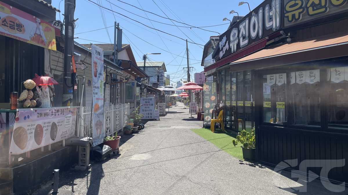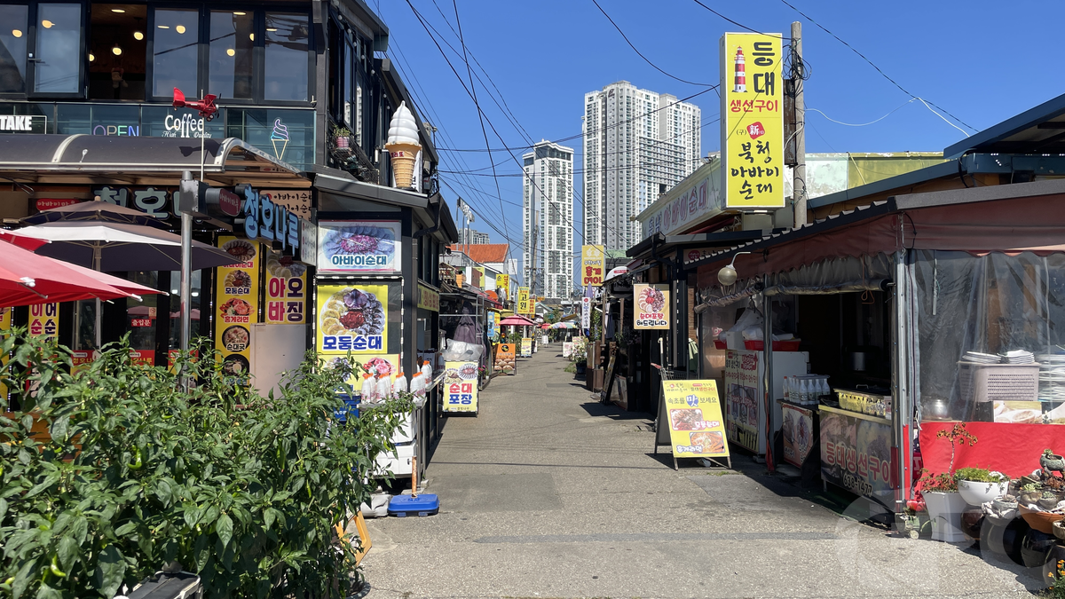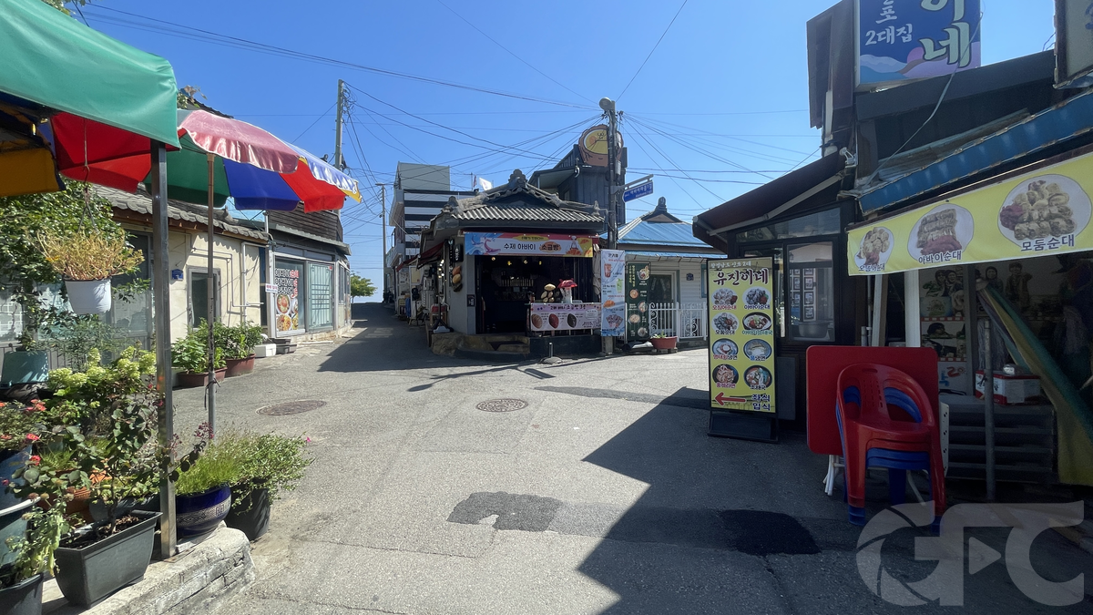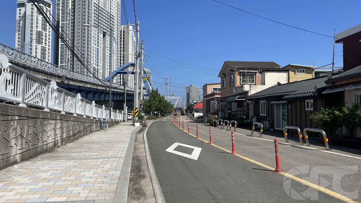 마을 곳곳의 골목길이 아기자기한 분위기를 풍기며, 마을을 건너가면 작은 해변이 보인다.