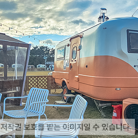 공간 구성: 오션뷰 카라반존 / 대형 카페 라운지 / BBQ존 / 수영장 / 잔디정원 / 포토존
