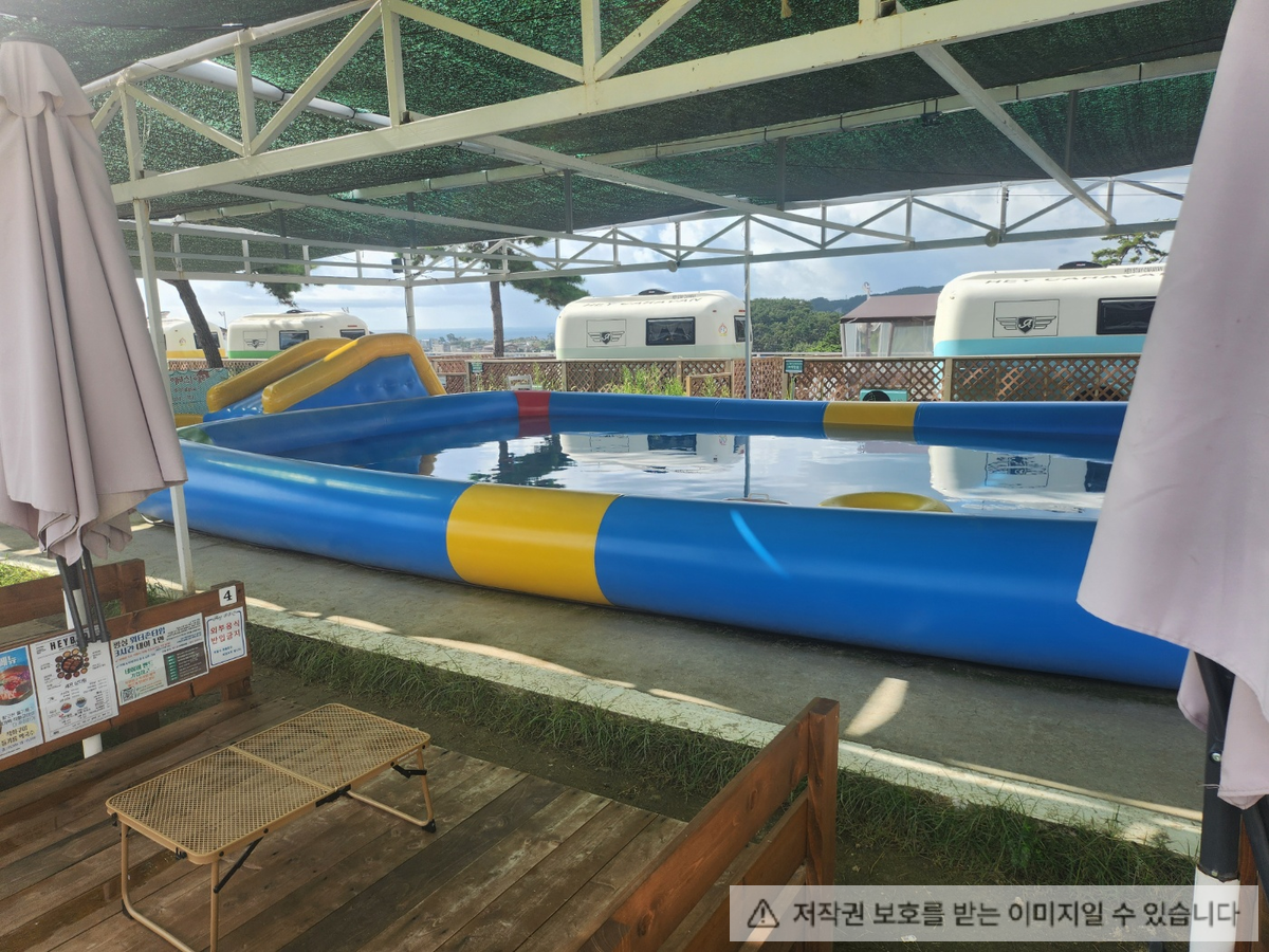 현재 카라반 숙박존, 오션뷰 카페, 야외 바비큐존, 수영장, 잔디정원, 어린이 물놀이존 등
