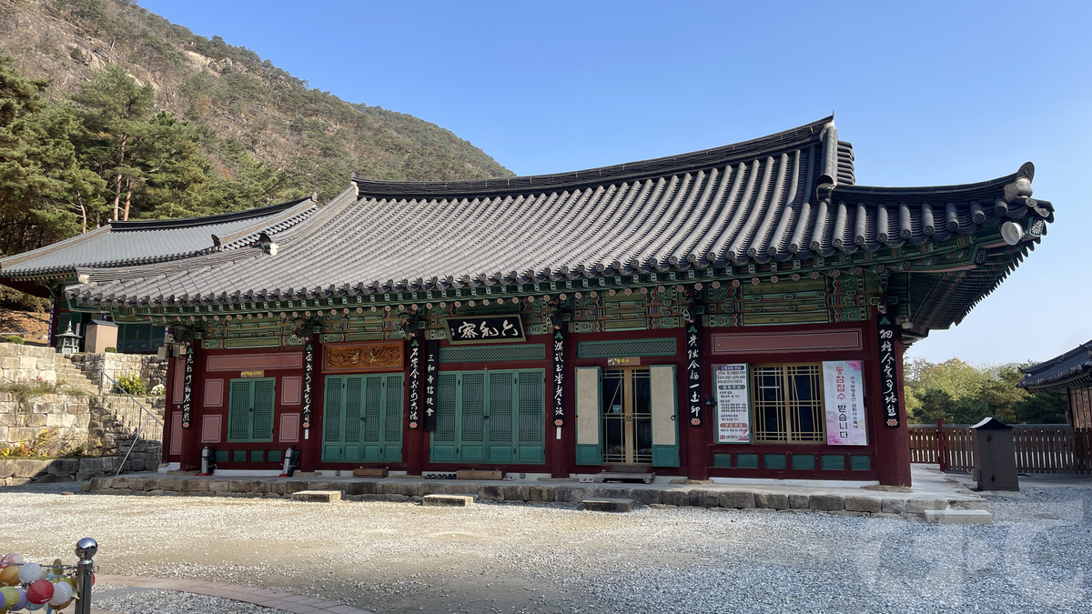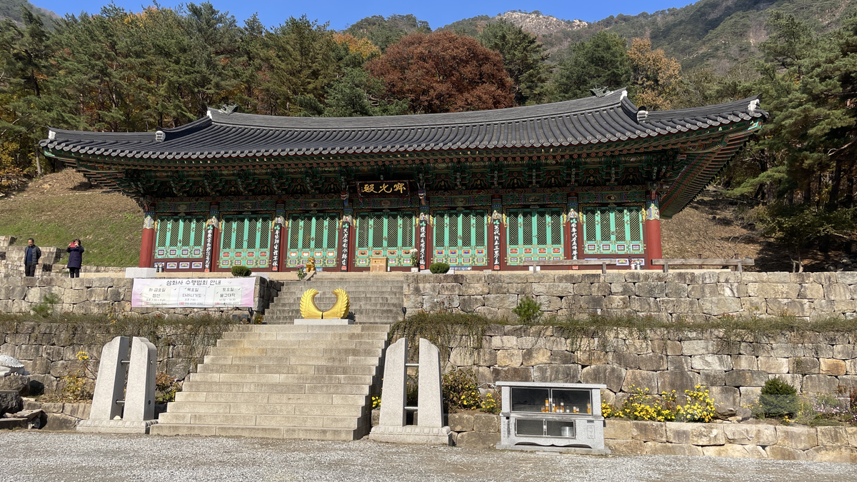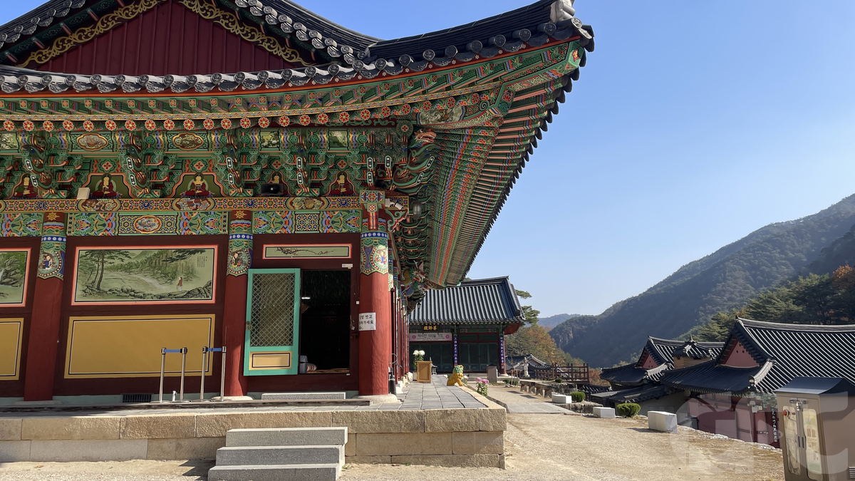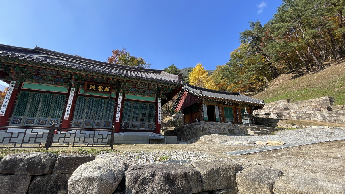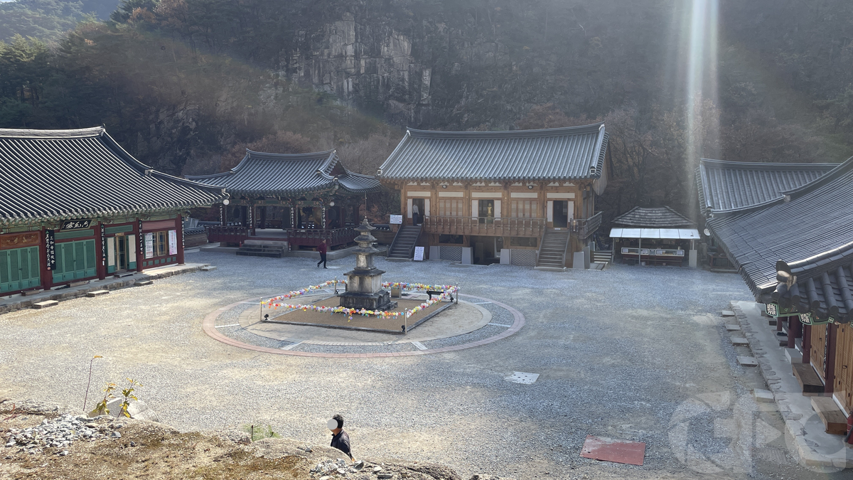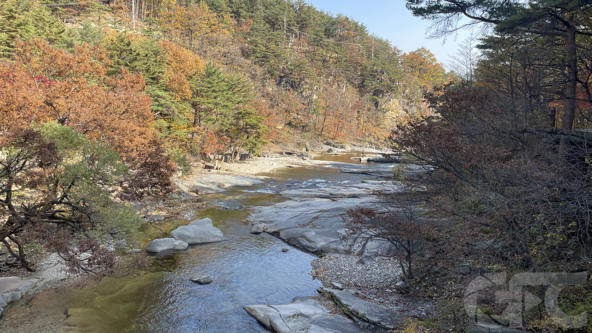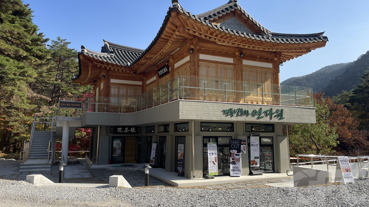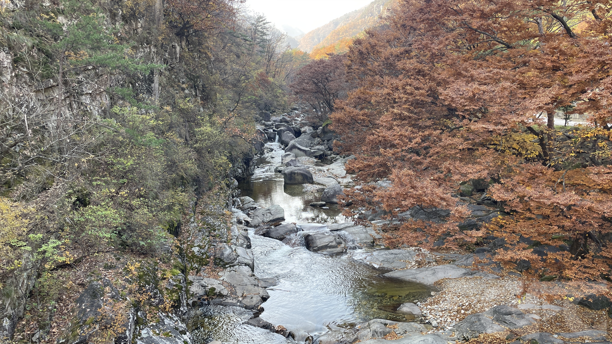 뒤로는 산이 배경이 되고 앞으로는 무릉계곡의 물이 흘러 빼어난 풍경을 보여준다.