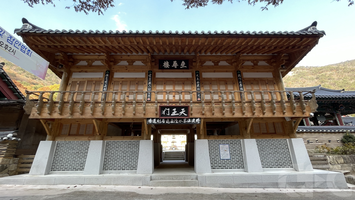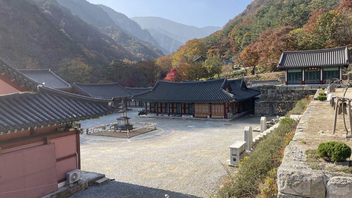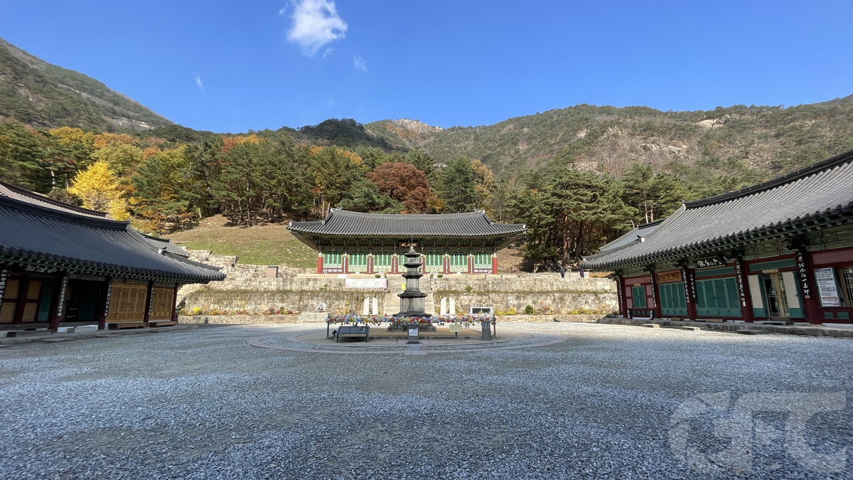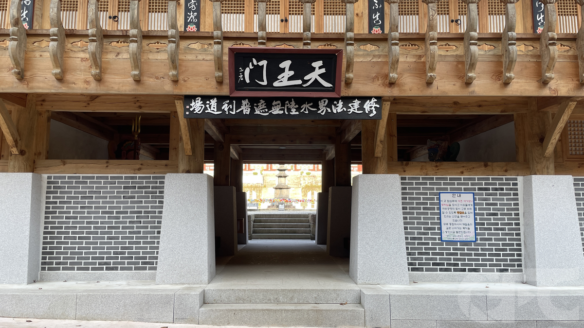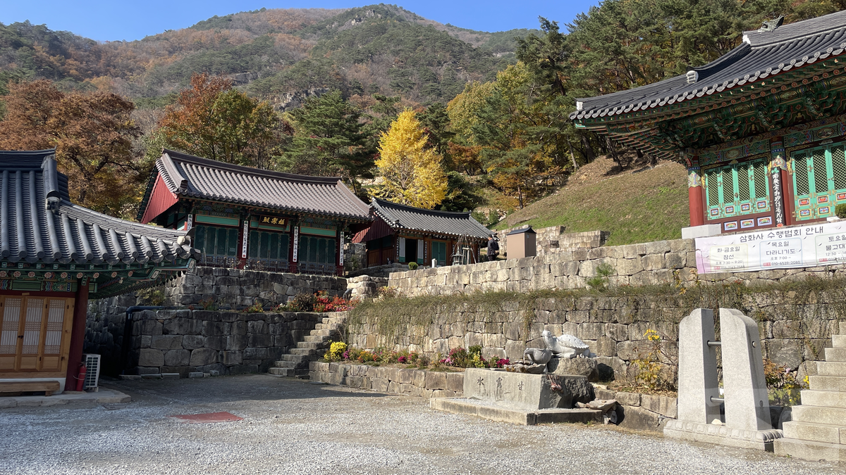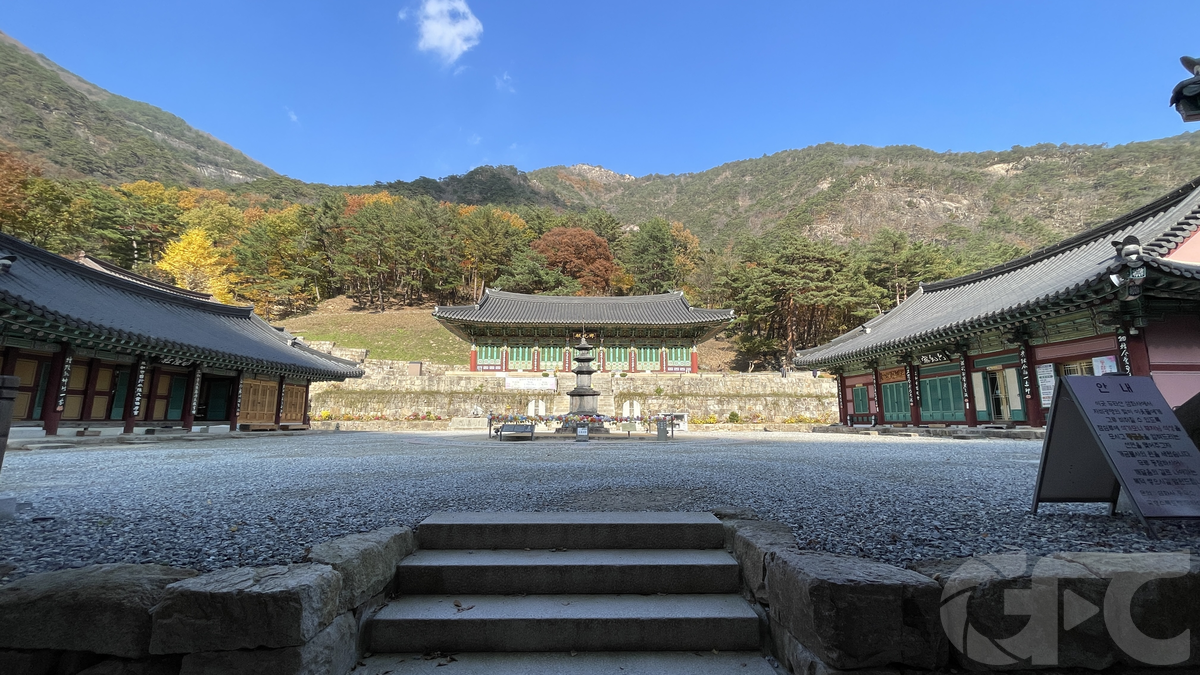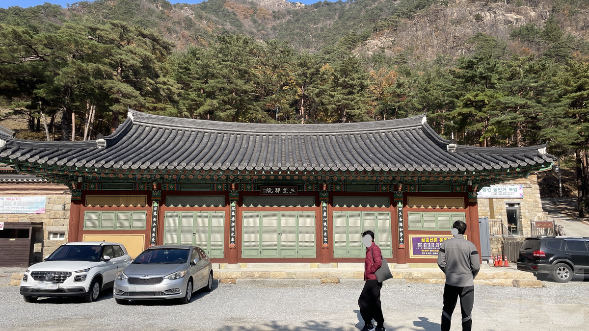 뒤로는 산이 배경이 되고 앞으로는 무릉계곡의 물이 흘러 빼어난 풍경을 보여준다.