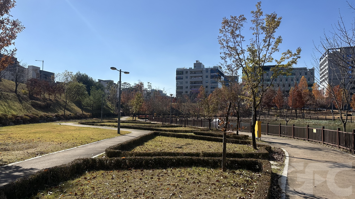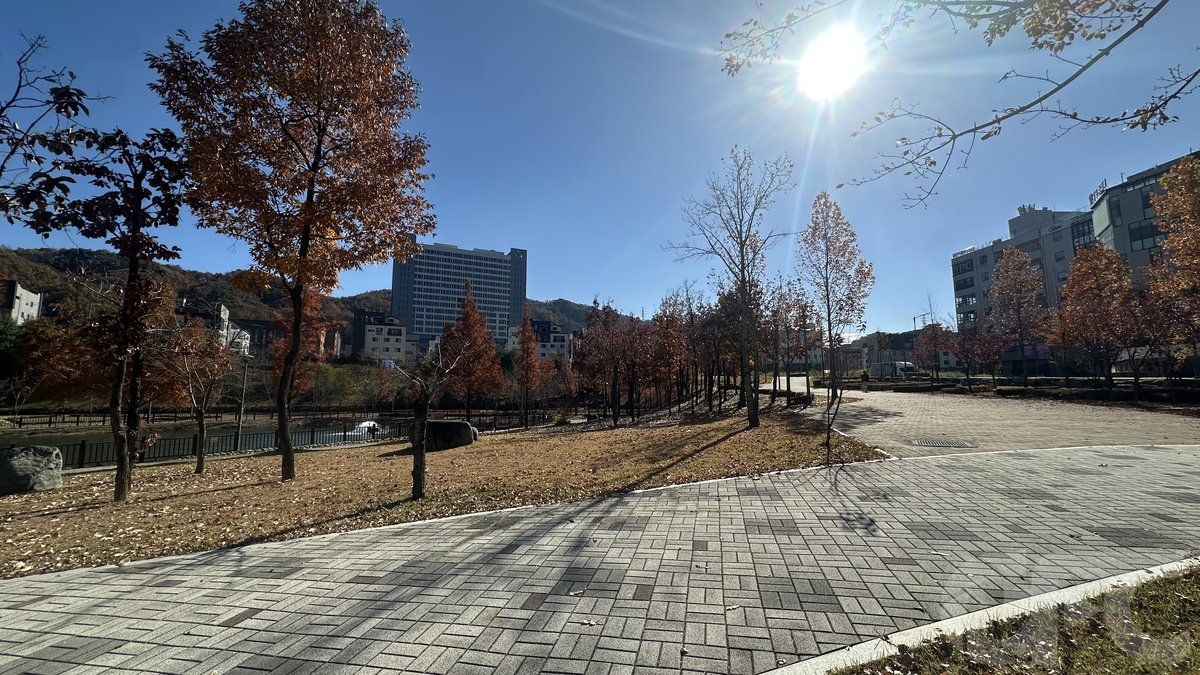 공원 전체가 길게 이어져 있어 롱테이크·트래킹샷 촬영에 유리한 특징이 있다.