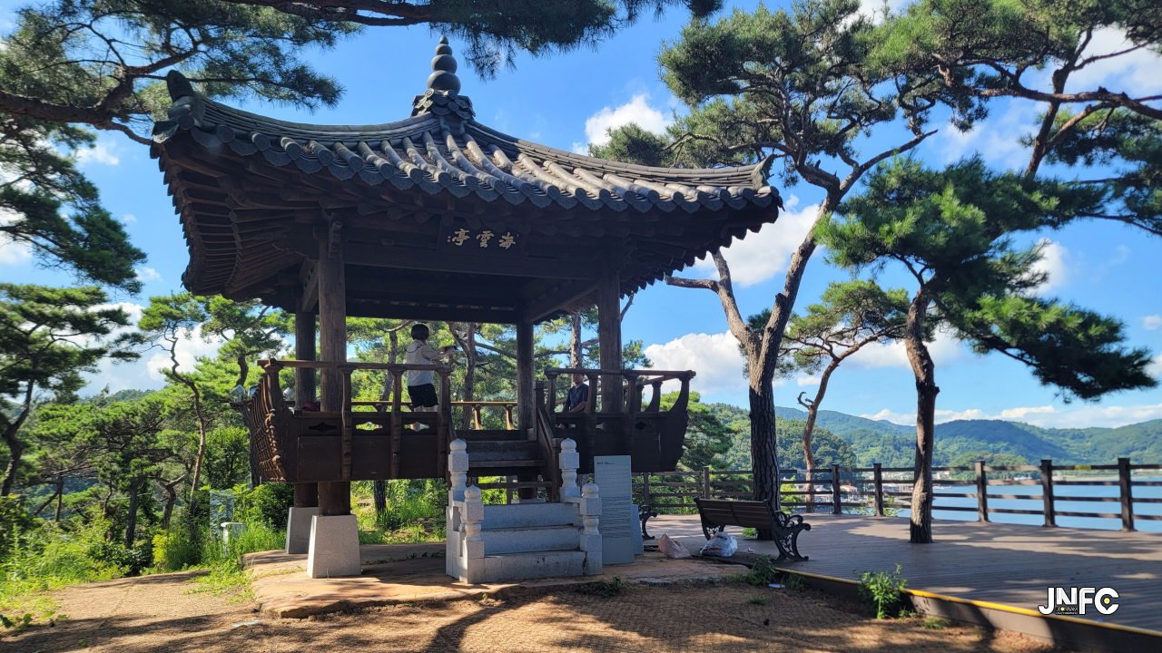 해운정에서 멋진 바다뷰를 내려다 볼 수 있다.