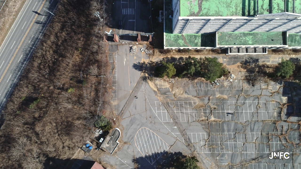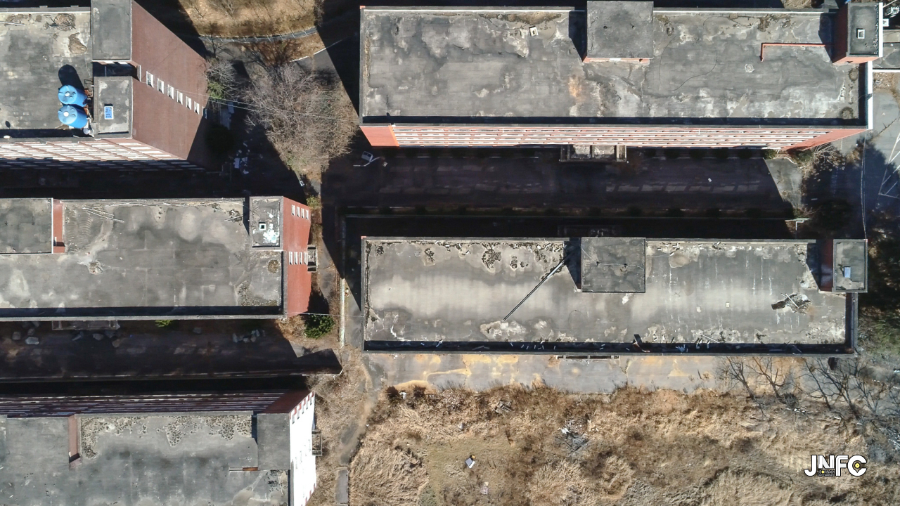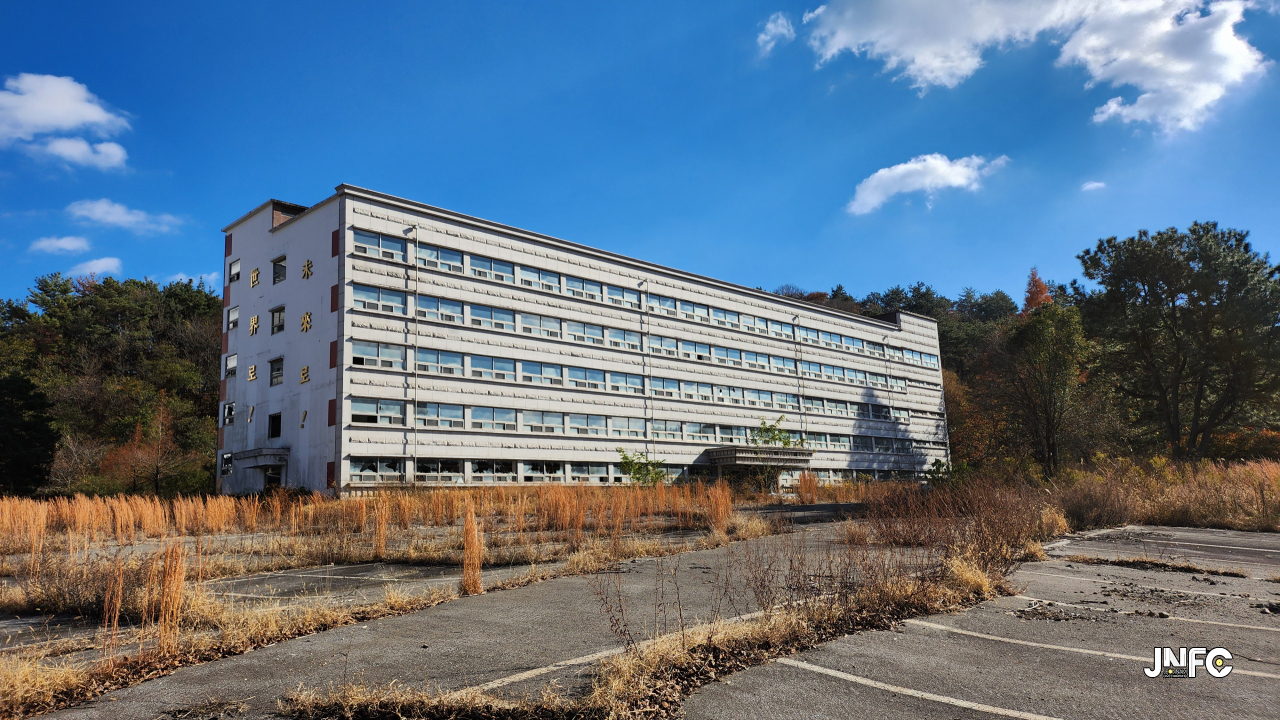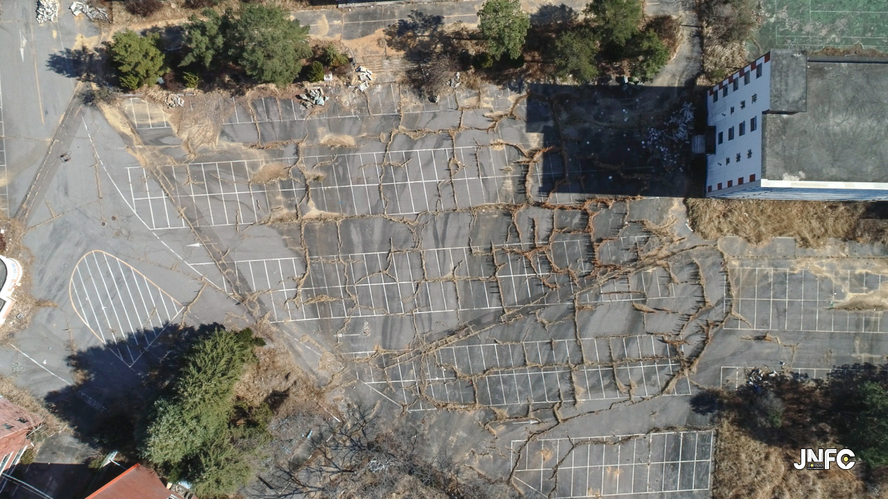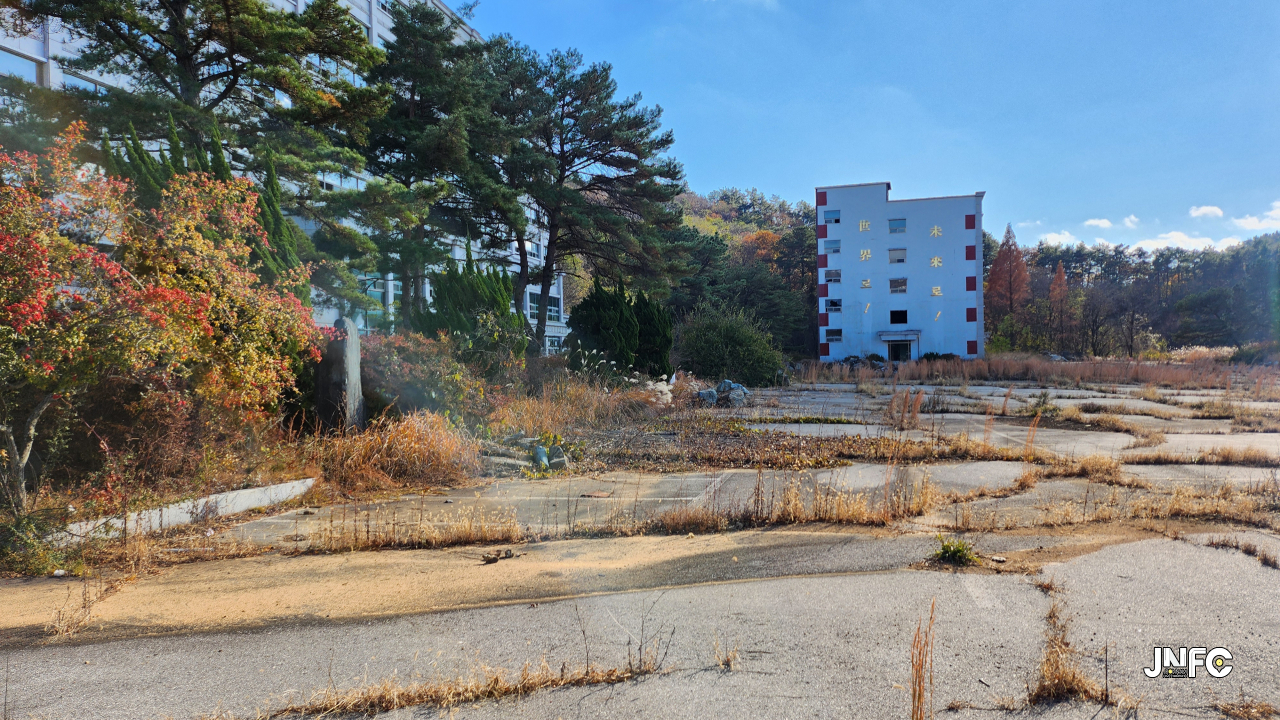 폐교된 대학교로 운동장엔 풀이 높게 자라있고, 주차장은 콘크리트가 깨져서 그 위로 풀이 덮혀있는 상태이다.