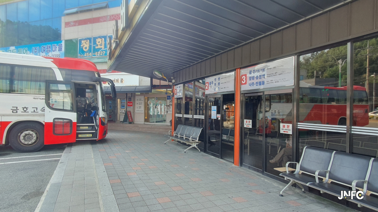 - 무안 버스터미널과 뻘낙지거리(수산시장)가 붙어있다.