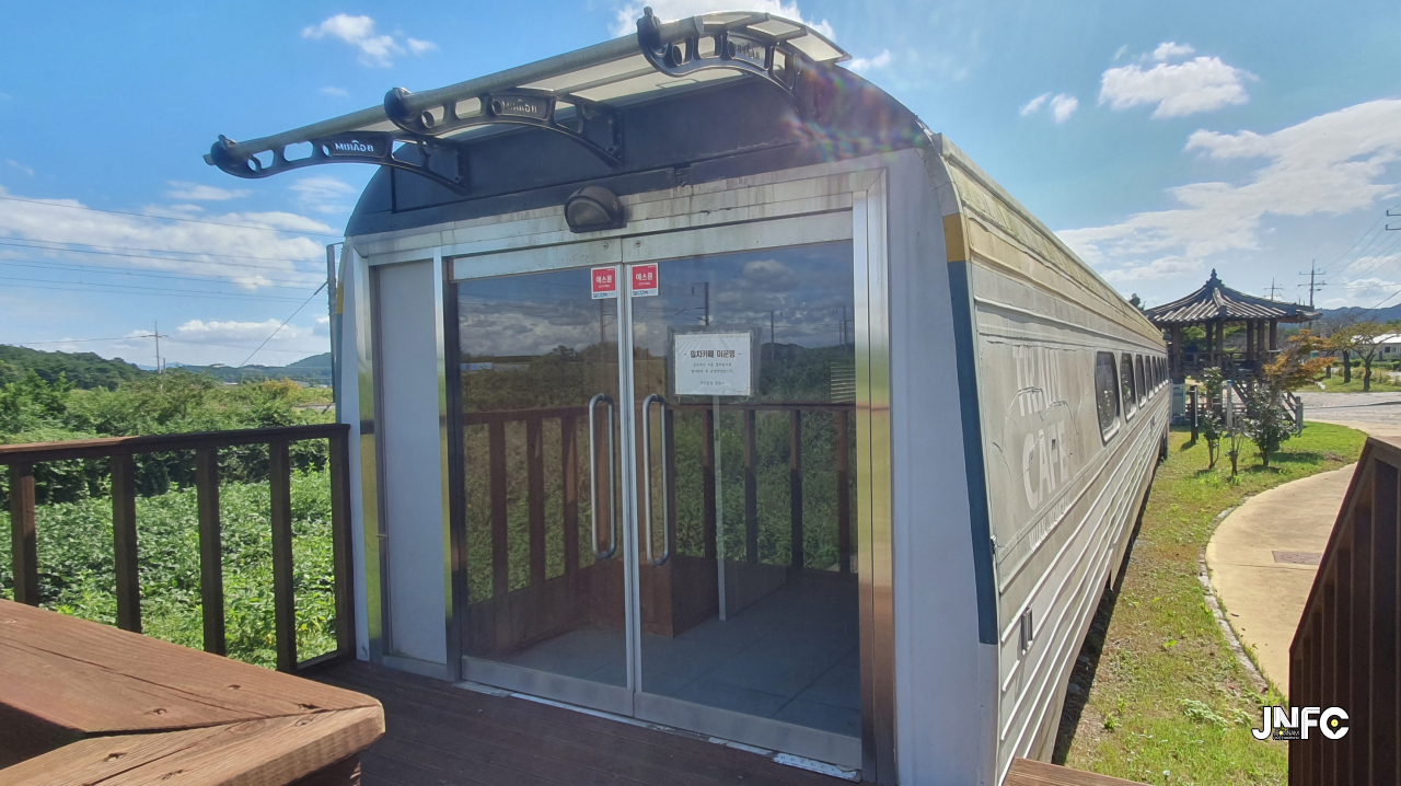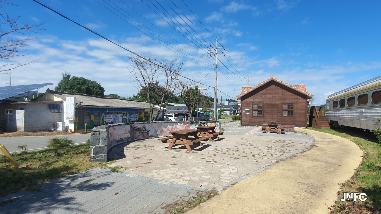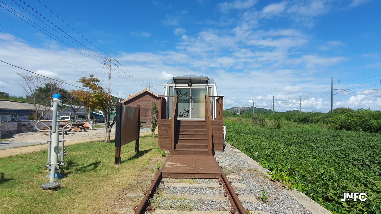 실제 열차가 다니는 기찻길 옆에 위치하며, 폐철도부지 공원이 조성되어있다.