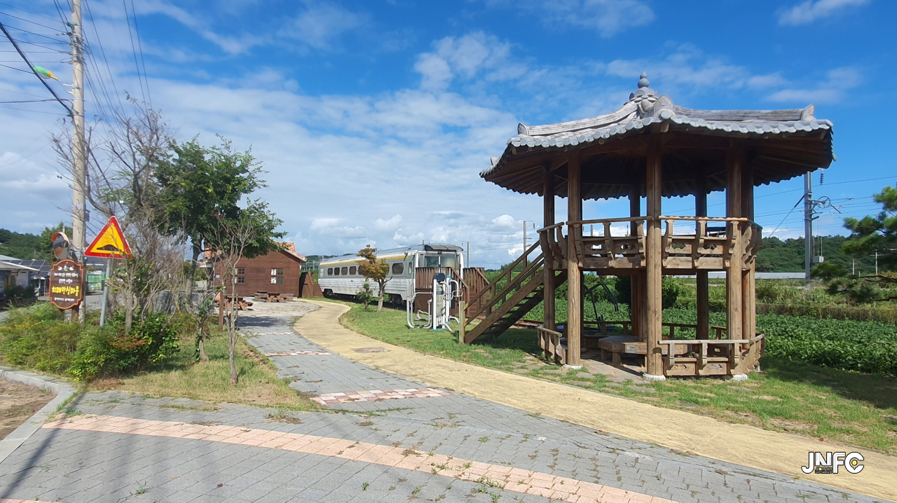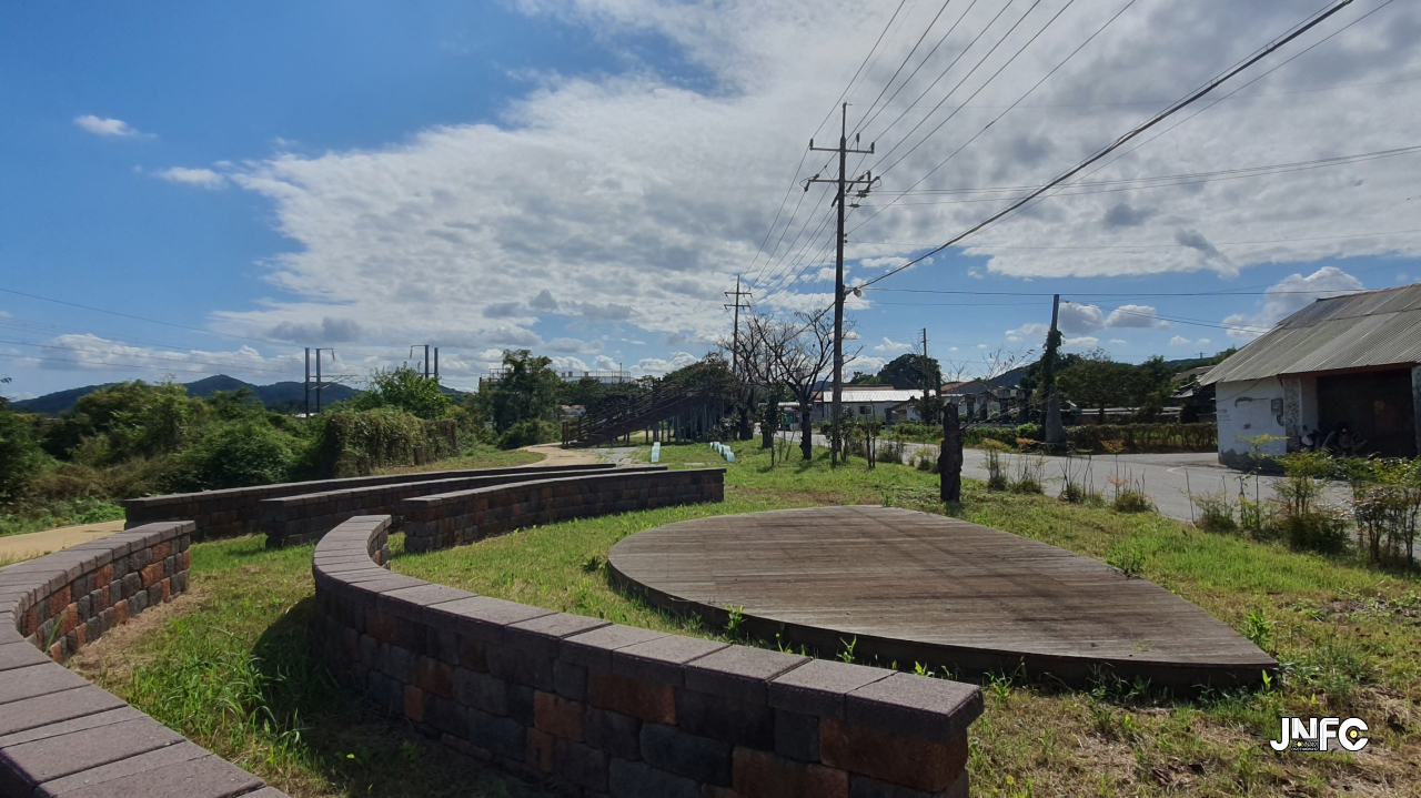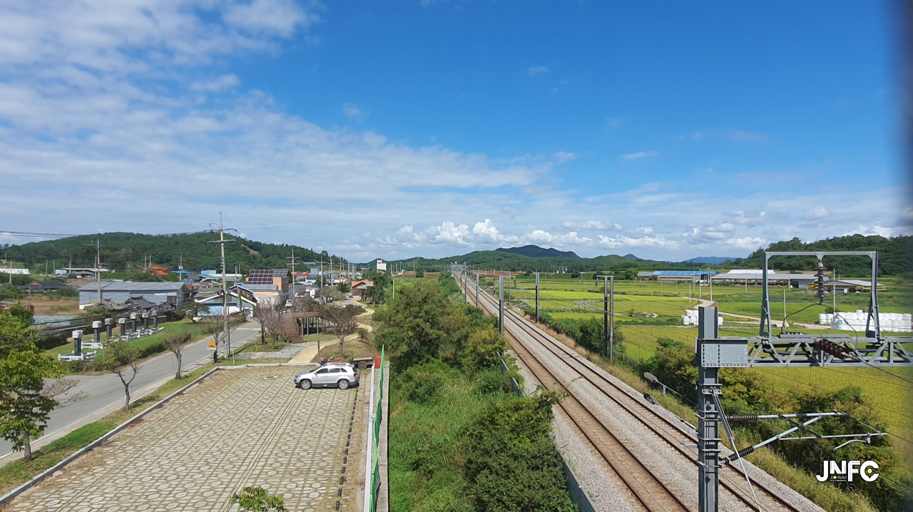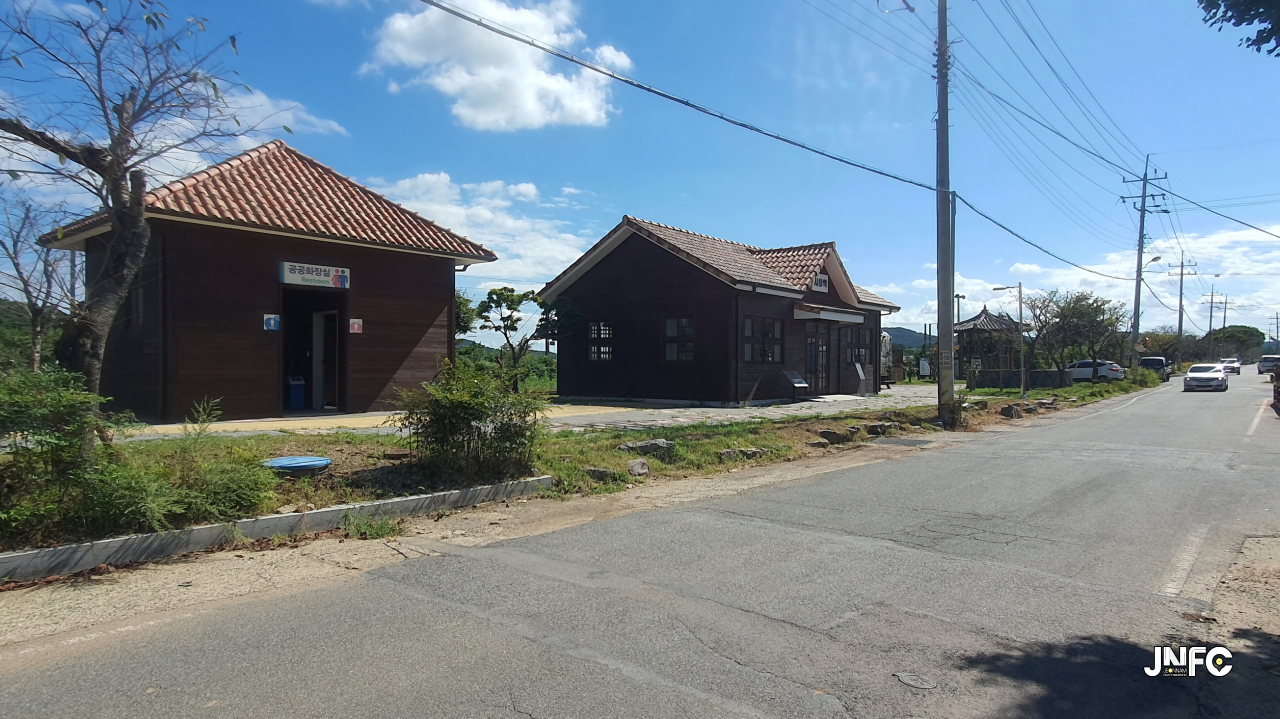 실제 열차가 다니는 기찻길 옆에 위치하며, 폐철도부지 공원이 조성되어있다.