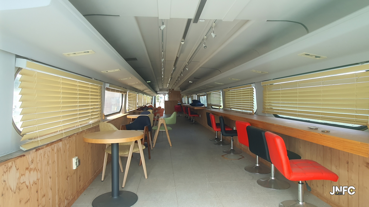 사창역은 안이 비워져 있음. / 열차카페는 열차의자는 없으며, 테이블과 의자가 있다.