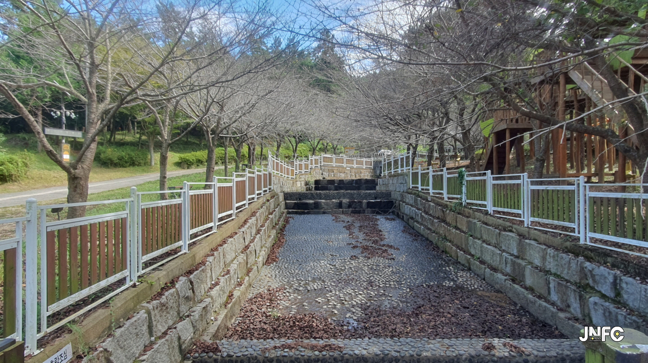 - 입구 주차장에 있는 건물은 화장실이며. 입구에 축구장이었던 공터가 있다. - 초당대학교와 입구가 같다.