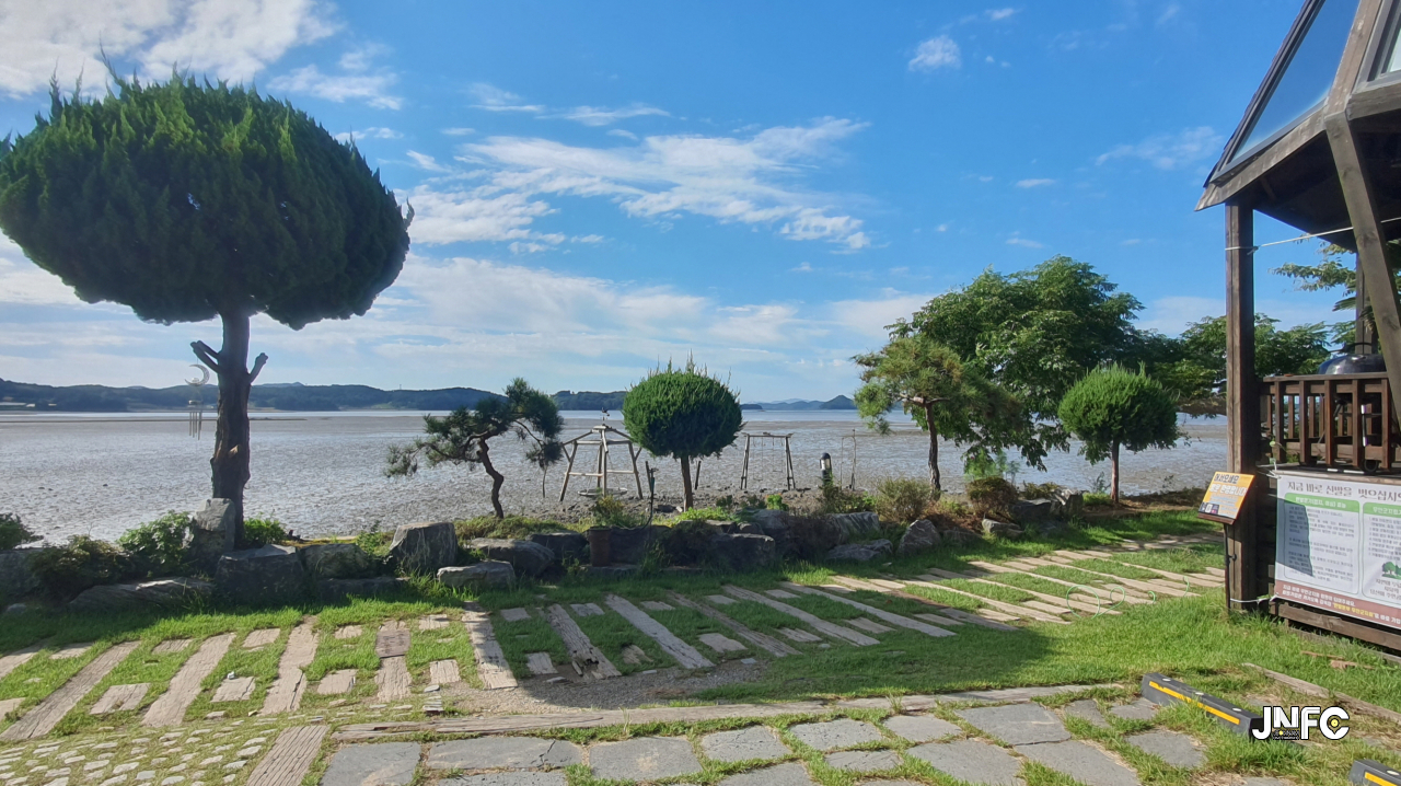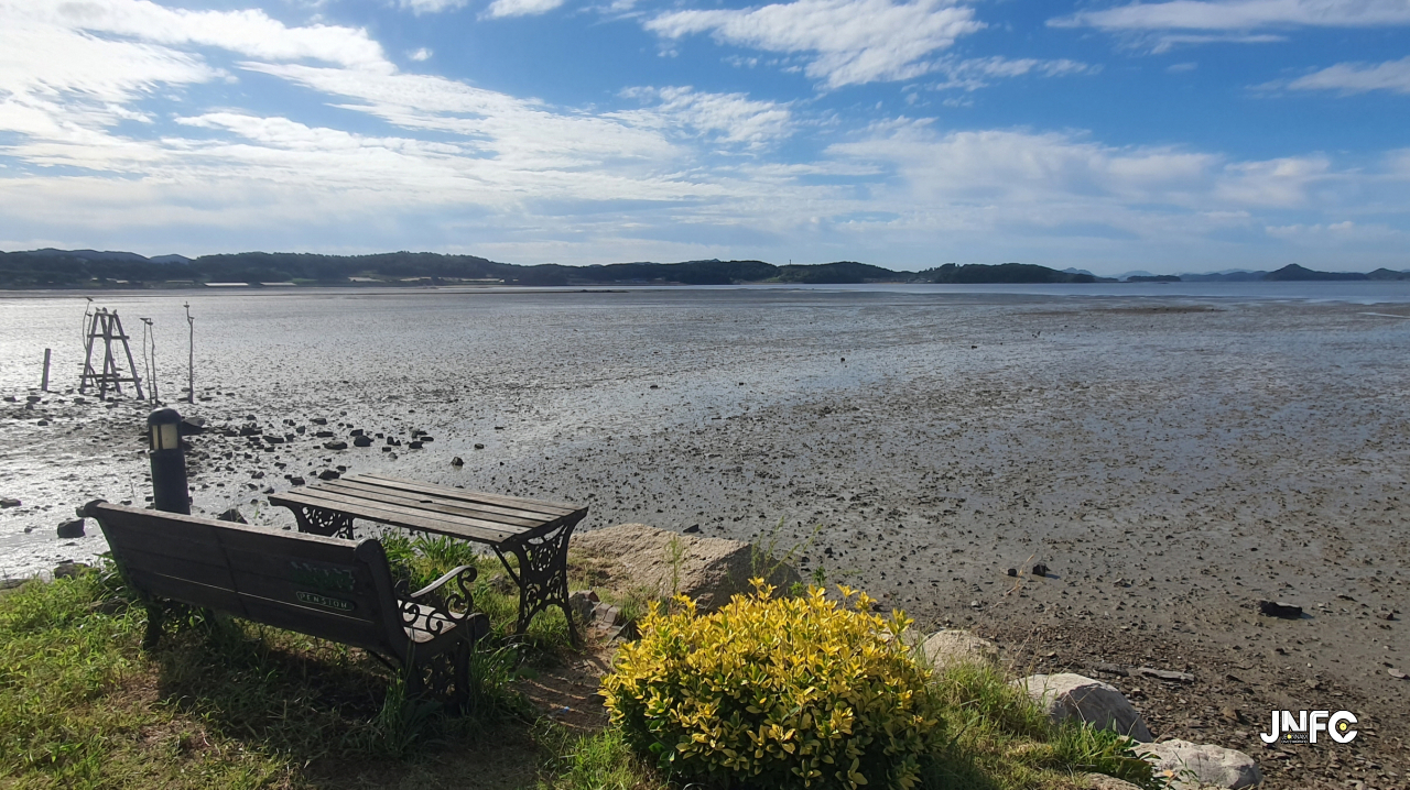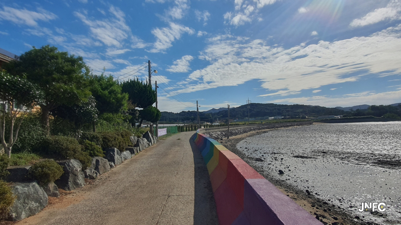 무지개길 입구(해안도로)와 바다(갯벌)에 조형물(그네 등)이 있으며, 풀장이 있다.