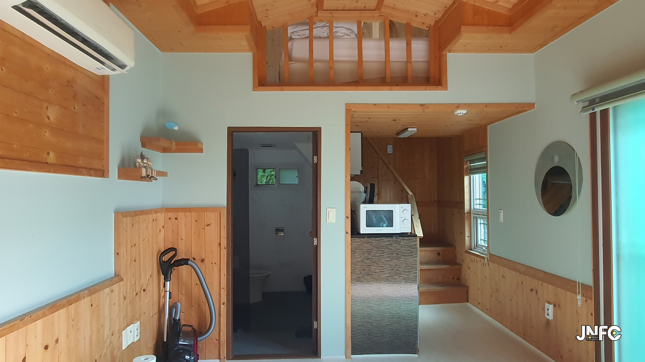 바로 옆 <캠핑형 바베큐장(시즈닝)>과 연결된 통로가 있음 인근(1KM)에 폐교된 초등학교를 현대적으로 리모델링 한 유치원 자연학습장이 있음.
