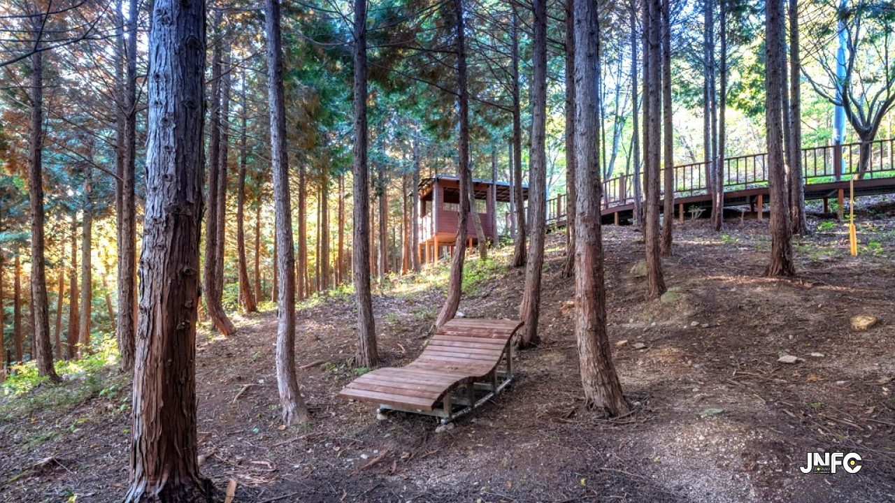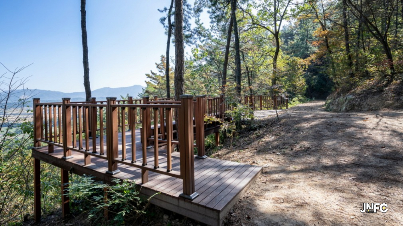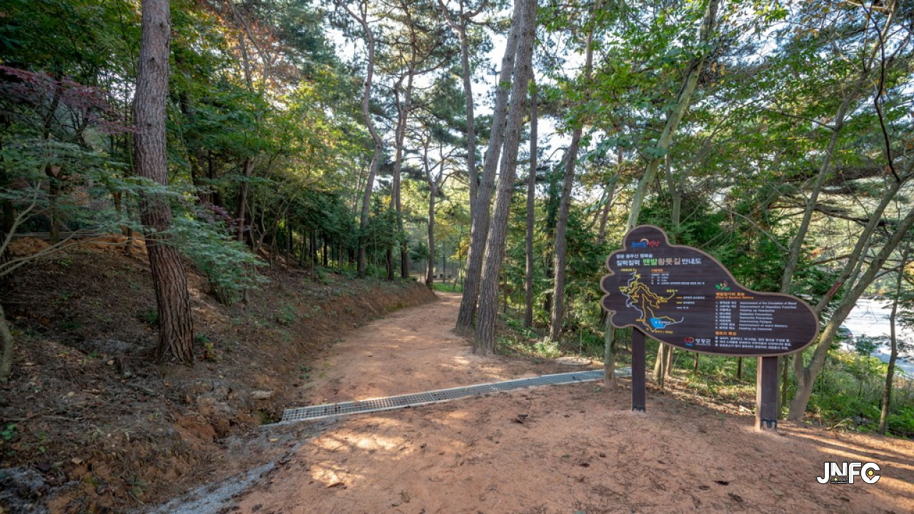 3대(代)가 함께 걷고 즐길 수 있도록 경사와 데크가 없는 숲속 둘레길과 유아숲 체험원, 물놀이장 등이 있다. 숲속에 '질퍽질퍽 맨발 황톳길', 산중턱에 '숲속 둘레길'을 개설하여 산정상이나 산 아래보다 피톤치드가 많은 숲길을 조성하였다.