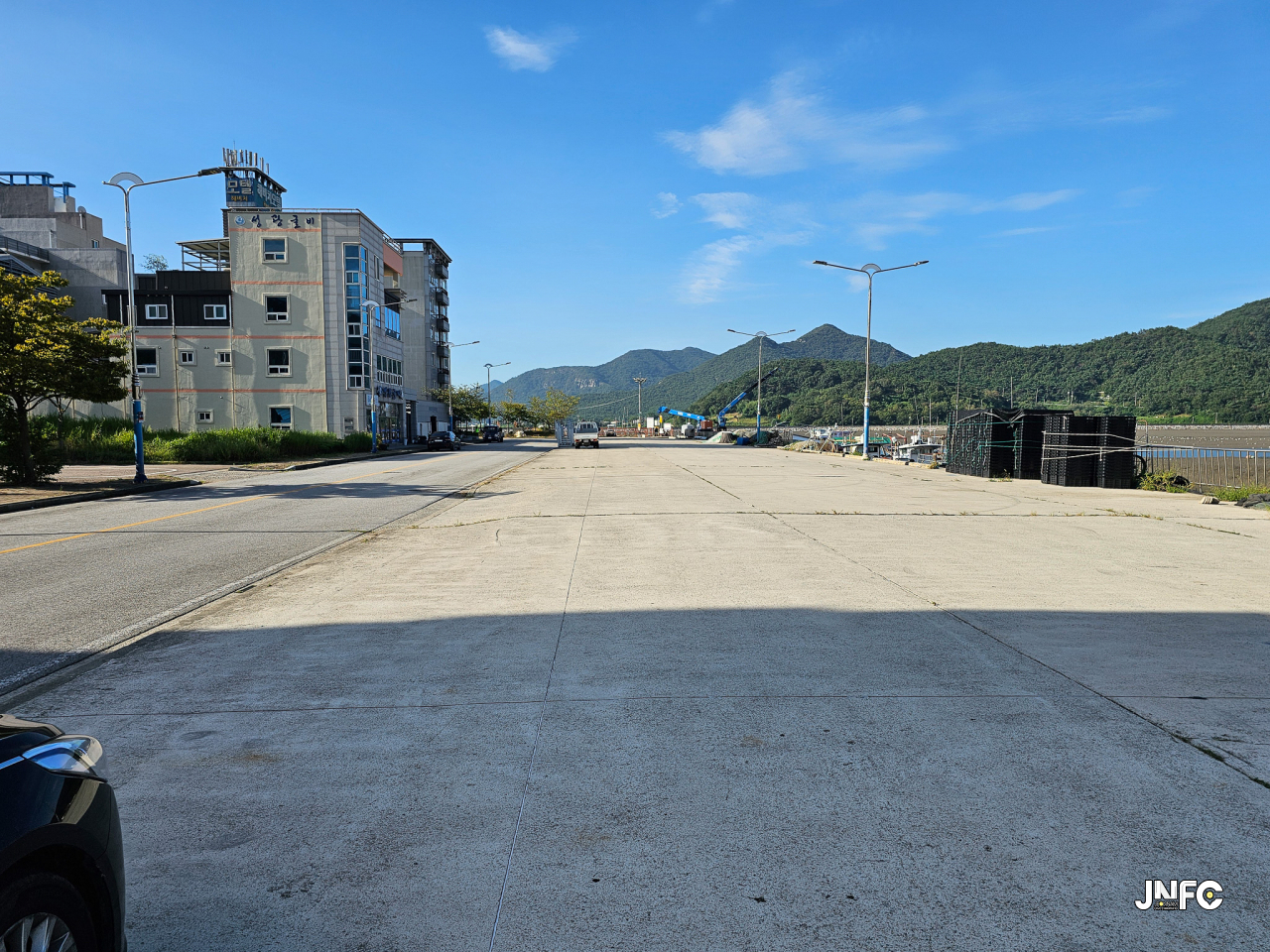 소규모 항구로 차량 통행량이 많이 없으며 주차가 용이하다,
