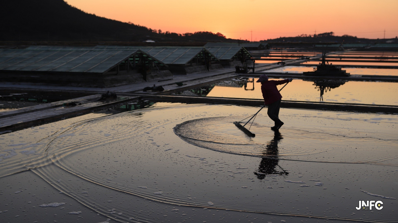 바둑판처럼 반듯하게 나눠진 천일염전은 태양 아래 은빛으로 빛나는 새하얀 소금 알갱이에 눈이 부시다. 영광(염산, 백수)의 무공해 천일염은 매년 3만2천톤(594ha)이 생산되어 전국 생산량의 10%를 차지하고 있다.