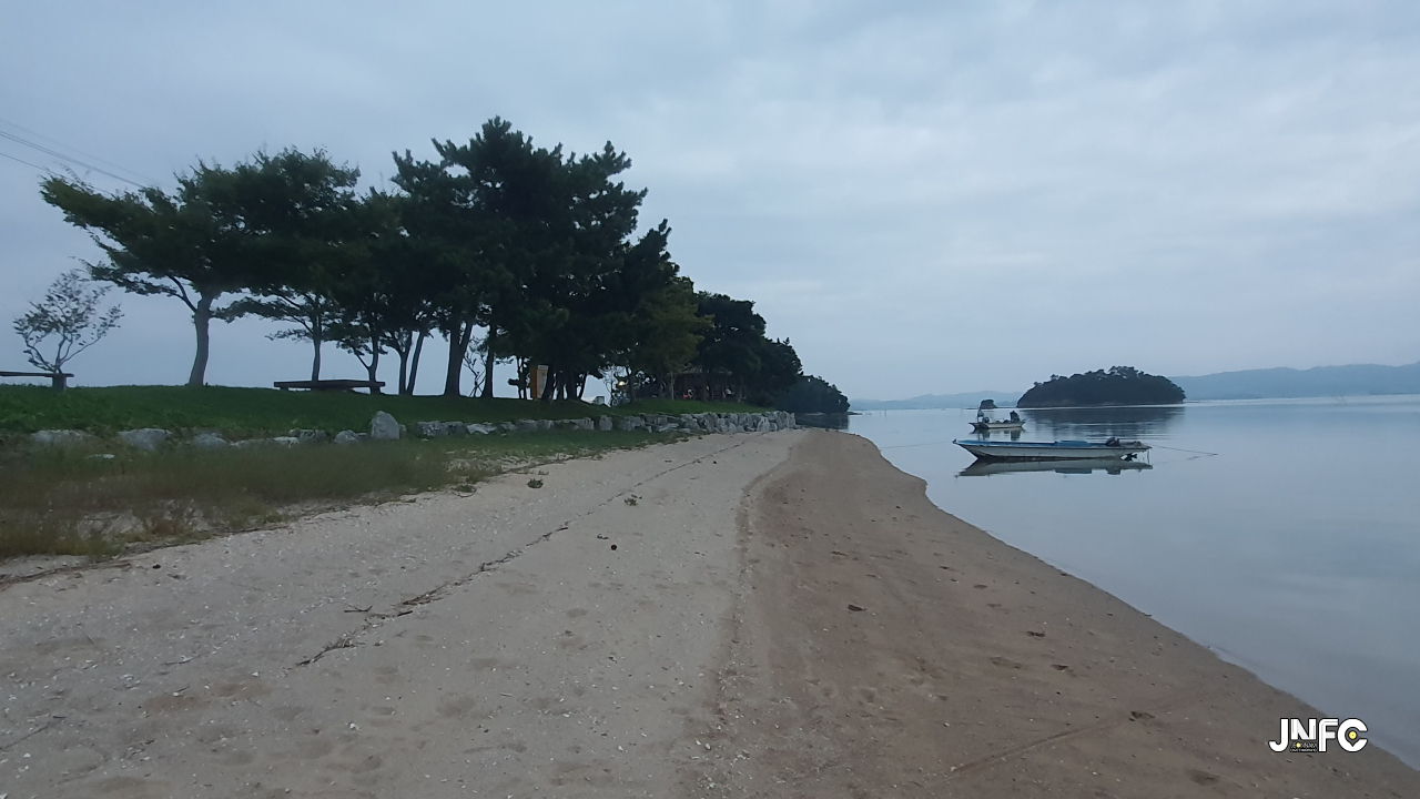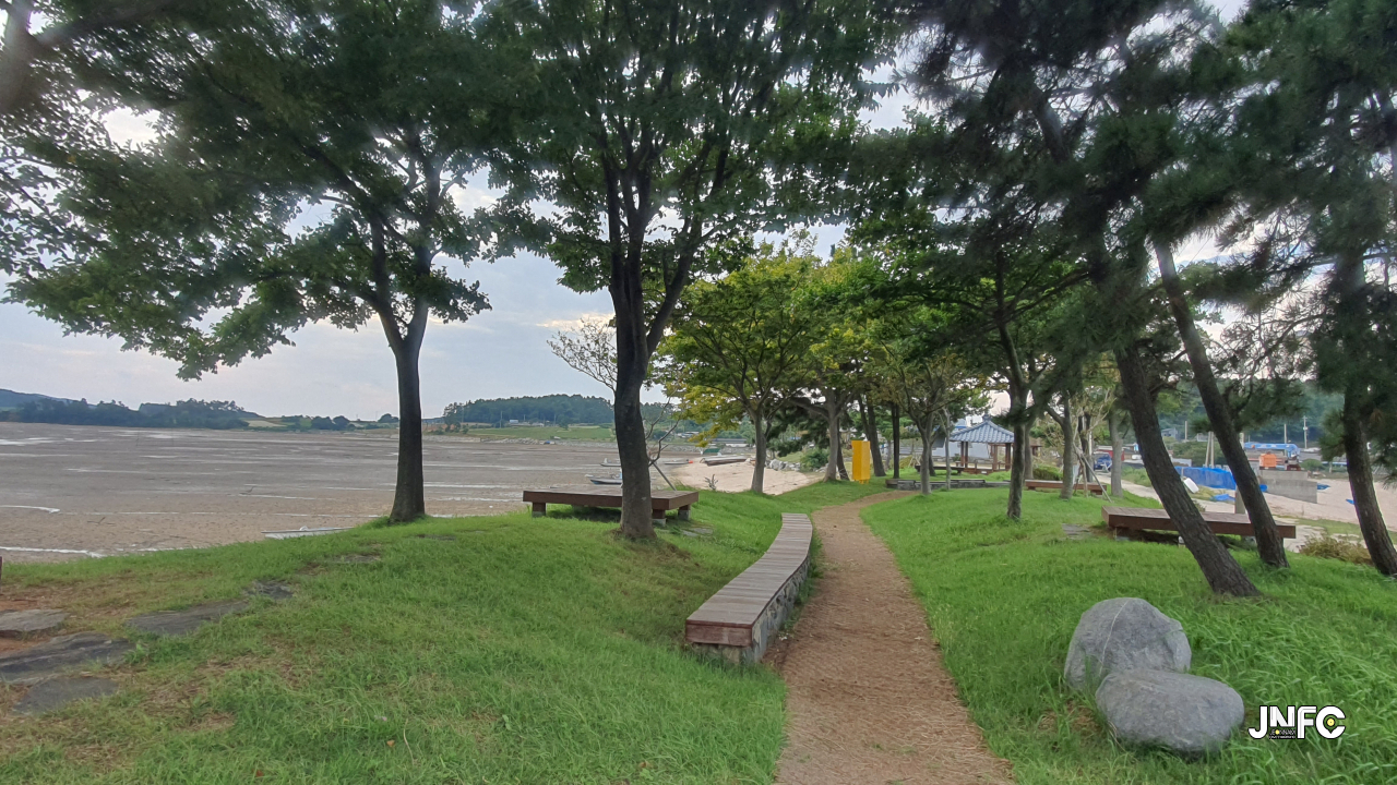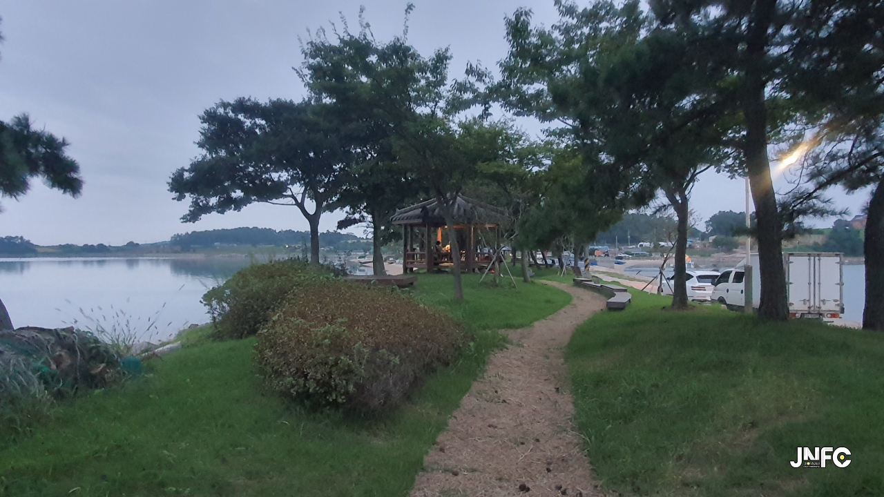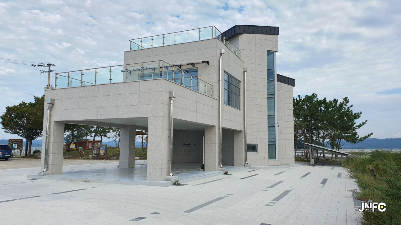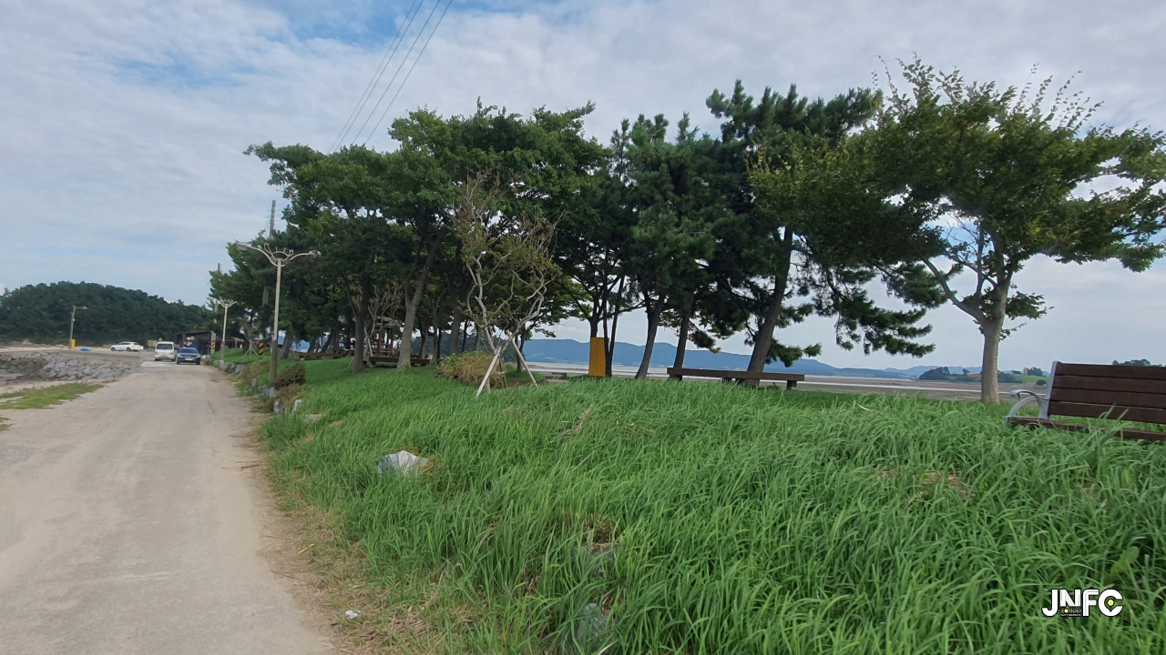 월두공원은 삼면이 바다로 둘러싸인 긴 섬 형태를 띠며, 특색 있는 화장실이 있다.