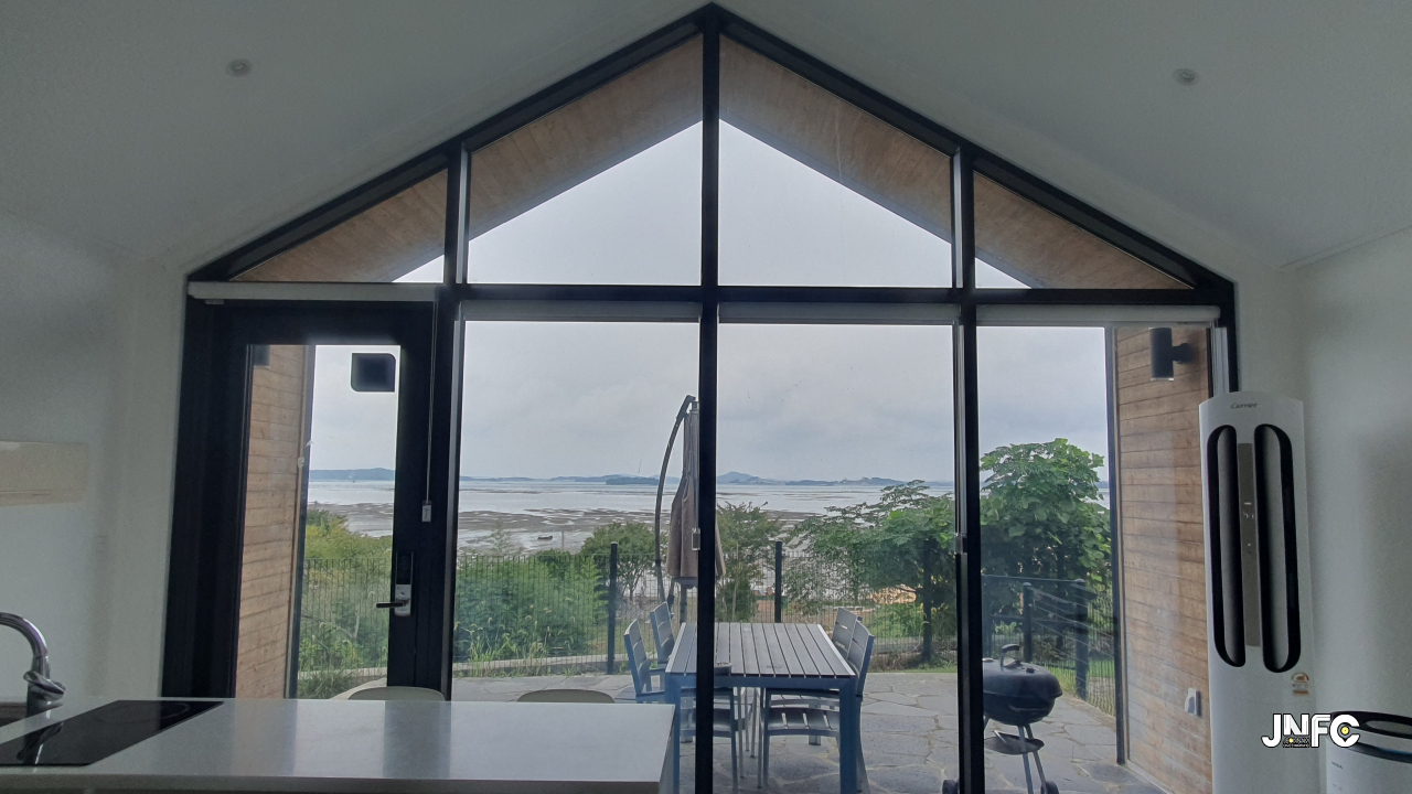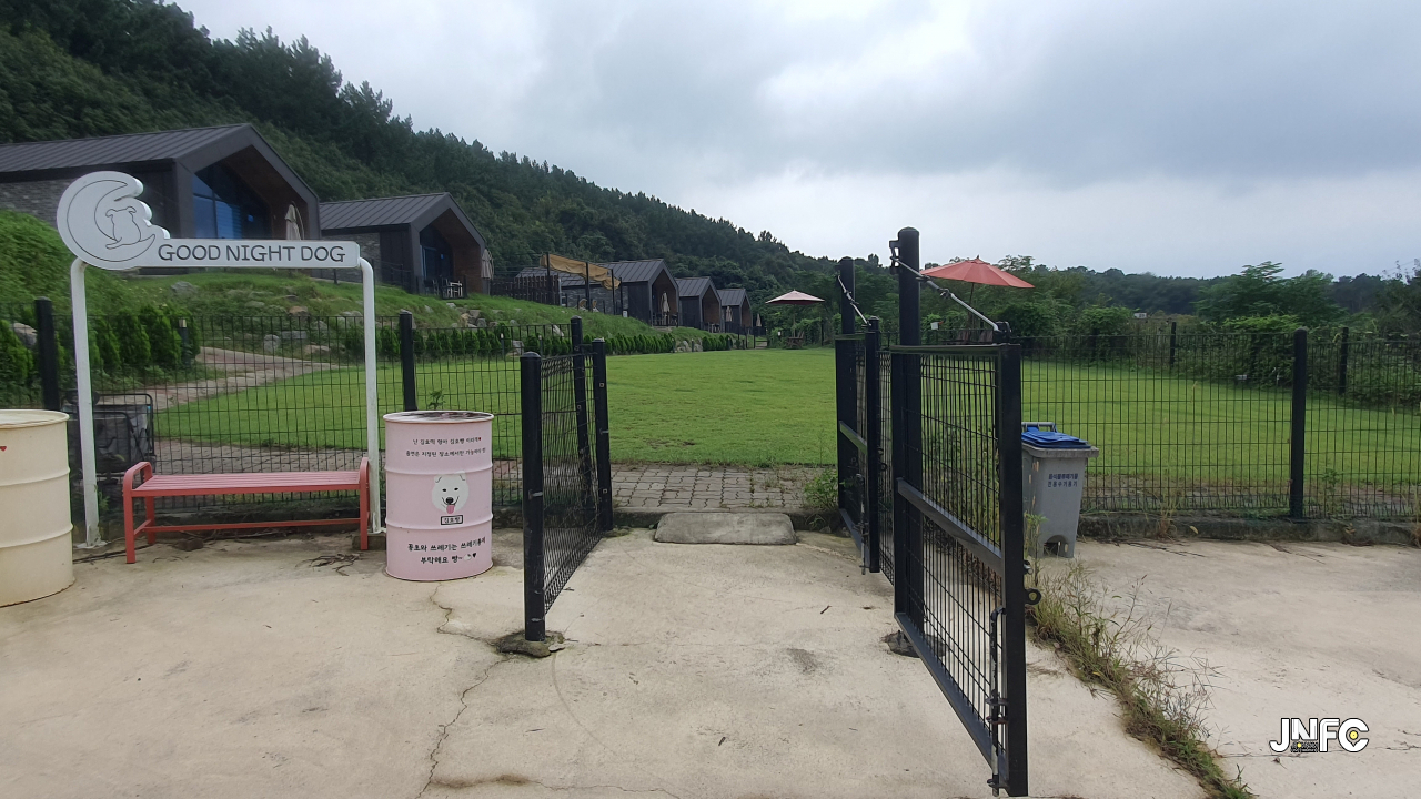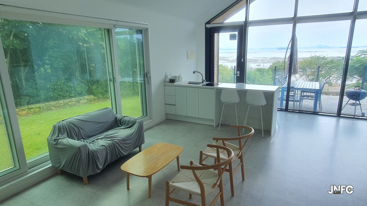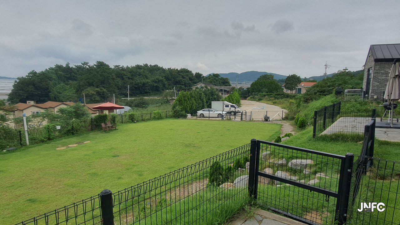 바로 앞에 바닷가가 있는 애견 펜션이다.