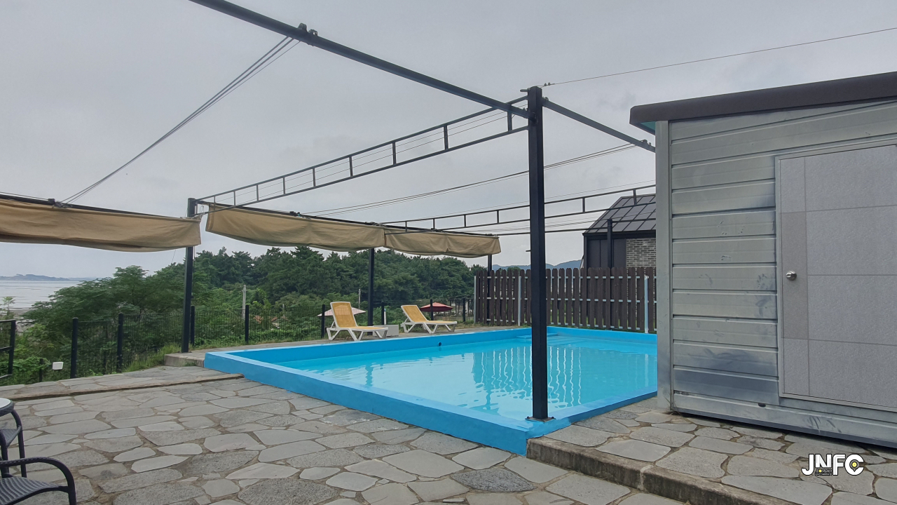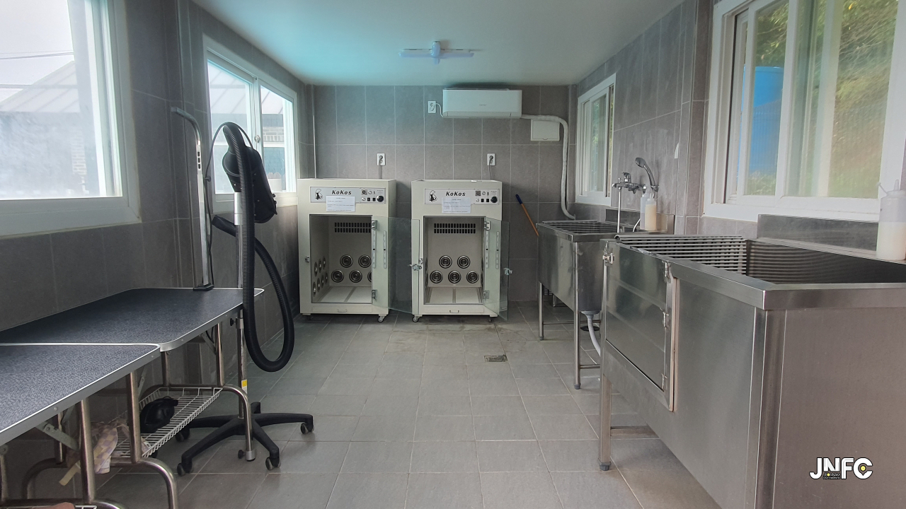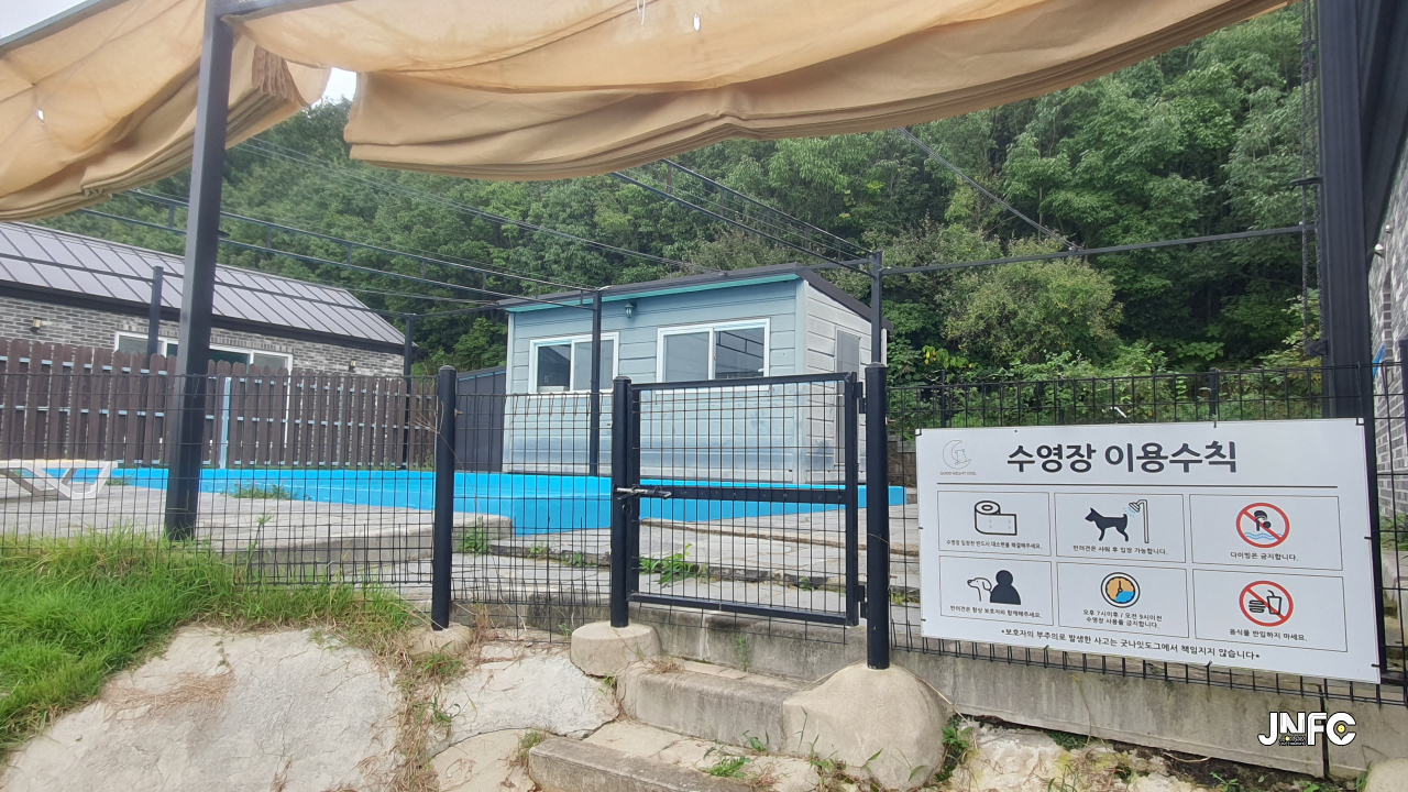애견을 위한 마당, 수영장, 목욕실이 있다.