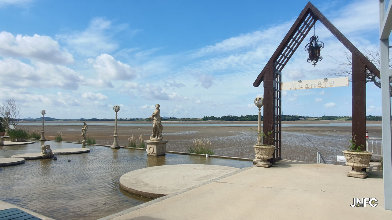 무안의 바다를 바라보는 뷰도 좋고 내부도 넓어 여유로운 시간을 보낼 수 있는 대형 카페이다. 감각적인 실내 인테리어가 바다 풍경과 어우러져 시원스러운 공간감이 돋보인다. 심플한 정사각의 건물 외관과 르네상스풍의 고전적인 분수가 무안의 바다와 어우러져 독특한 분위기를 자아낸다. 야외 공간은 마치 유럽에 와 있는 듯한 이국적인 정원과 수국이 심어져 있다. 1층은 앤틱한 가구와 조명이 초록의 식물들과 어우러진 고전풍의 분위기라면 2층은 화이트 모던한 깔끔한 캐주얼한 실내 공간으로 통창을 통해 무안 바다가 훅 밀려들어오는 느낌이다. 무안 879는 곳곳이 포토존으로 예쁜 사진도 찍고 바다를 보면서 음료와 베이커리를 즐길 수 있는 무안의 핫한 공간이다. 야외에는 바다를 향해 삼각지붕의 프라이빗한 공간이 나란히 설치되어 있어, 시원한 바닷바람을 맞으며 휴식을 즐길 수 있다. 다양한 분위기에서 다양한 시각으로 바다를 즐길 수 있게 공간을 배치하고 꾸민 카페의 감각이 놀랍다. 출처 : 대한민국 구석구석