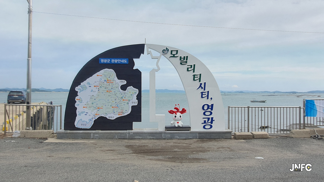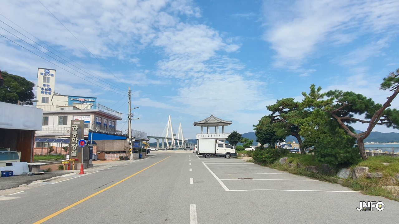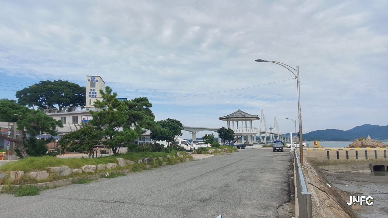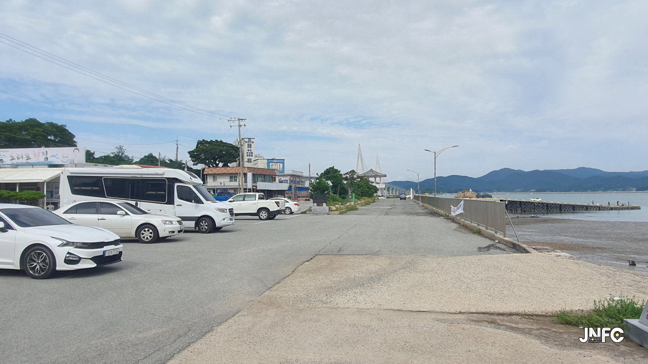 유원지에서는 칠산대교(무안-영광)가 보이며, 목포수협 무안수산물 위판장, 2층 정자, 영광군 관광안내도가 있다.