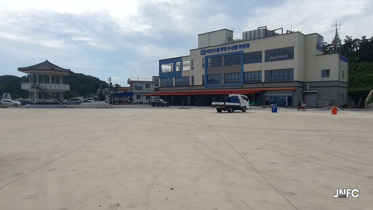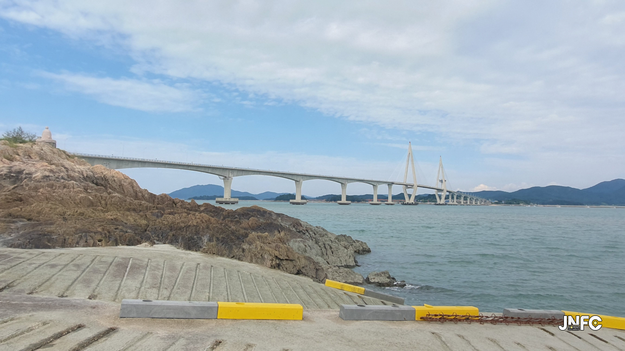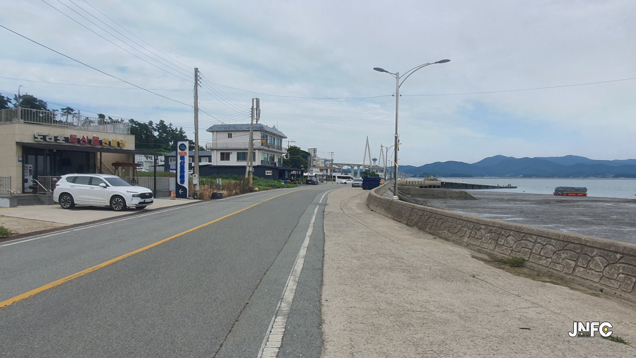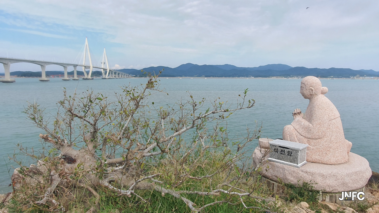 유원지에서는 칠산대교(무안-영광)가 보이며, 목포수협 무안수산물 위판장, 2층 정자, 영광군 관광안내도가 있다.