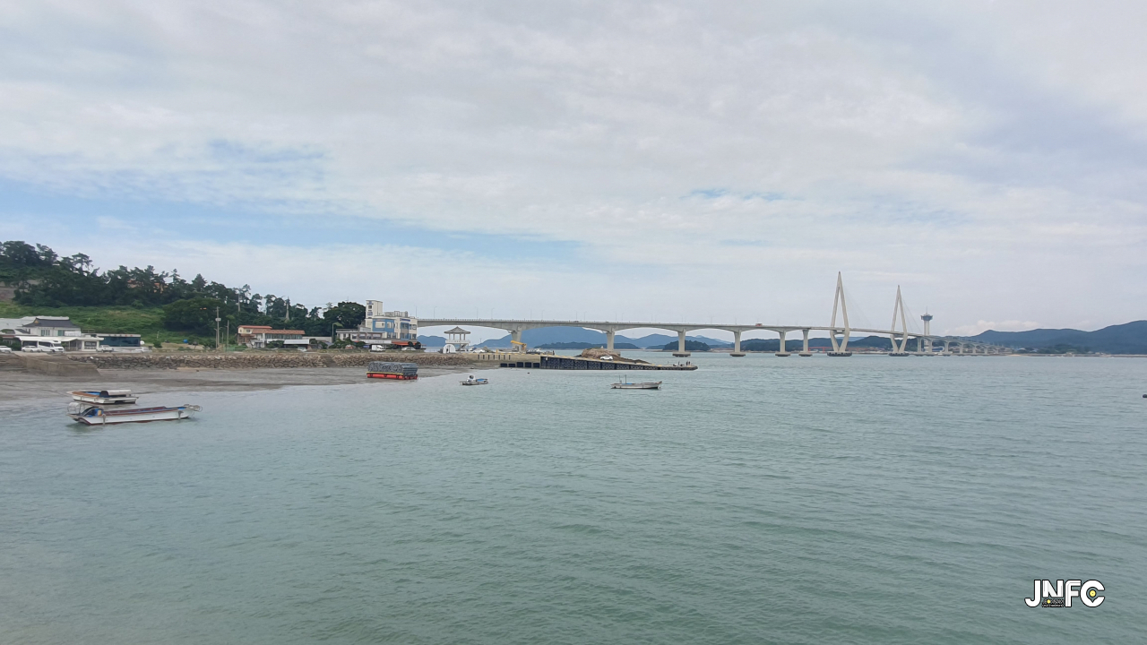 칠산대교(무안-영광)가 보이며, 무안갯벌낙지 조형등대가 있다.