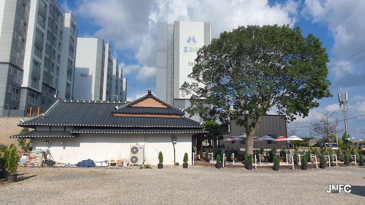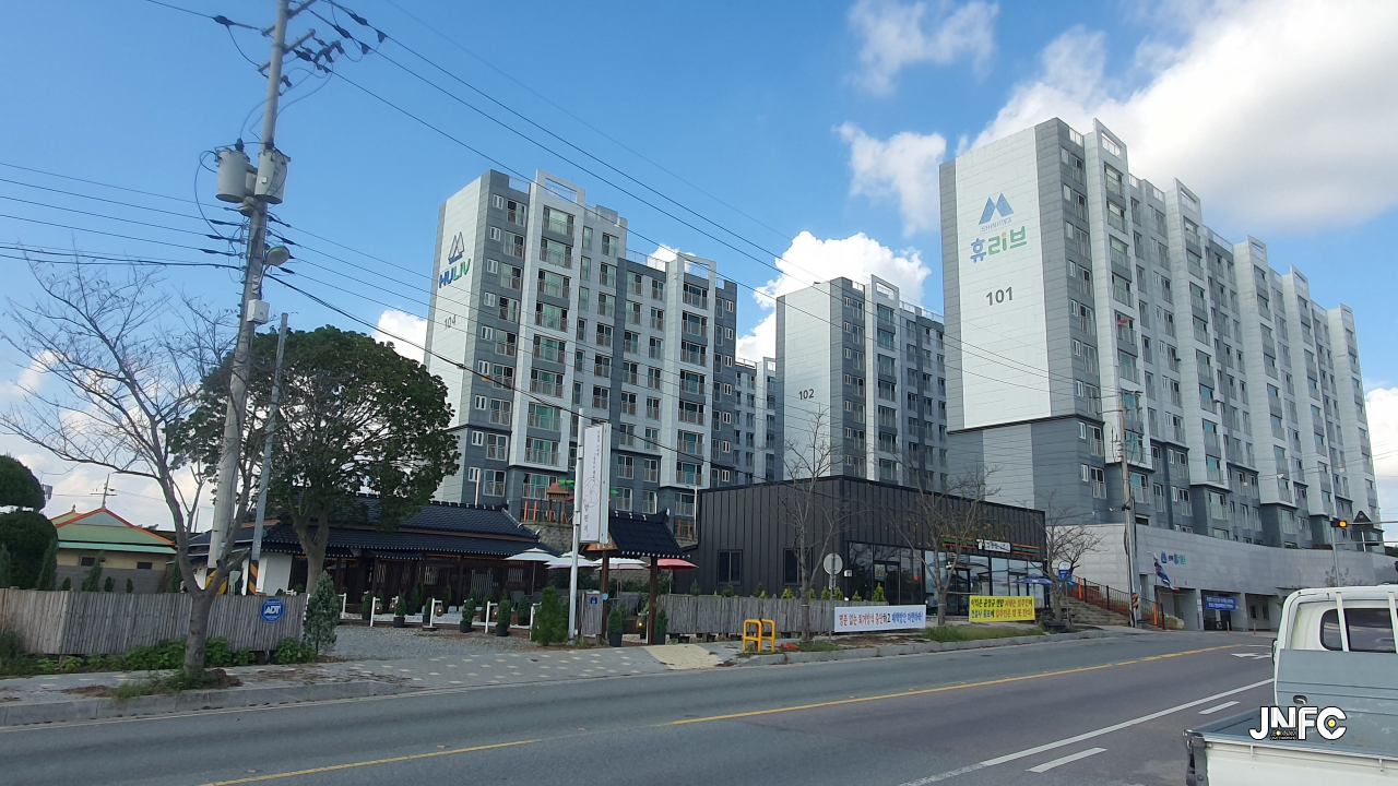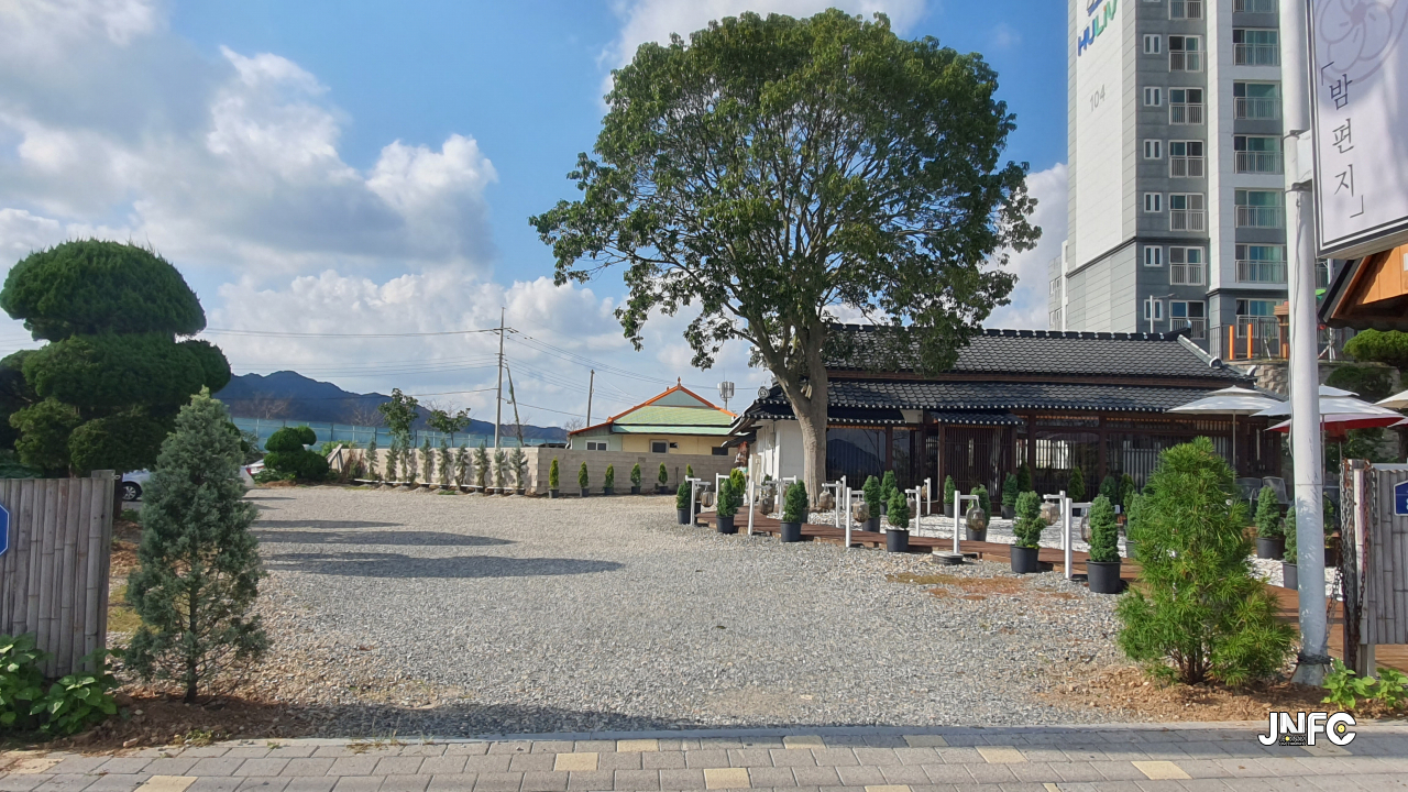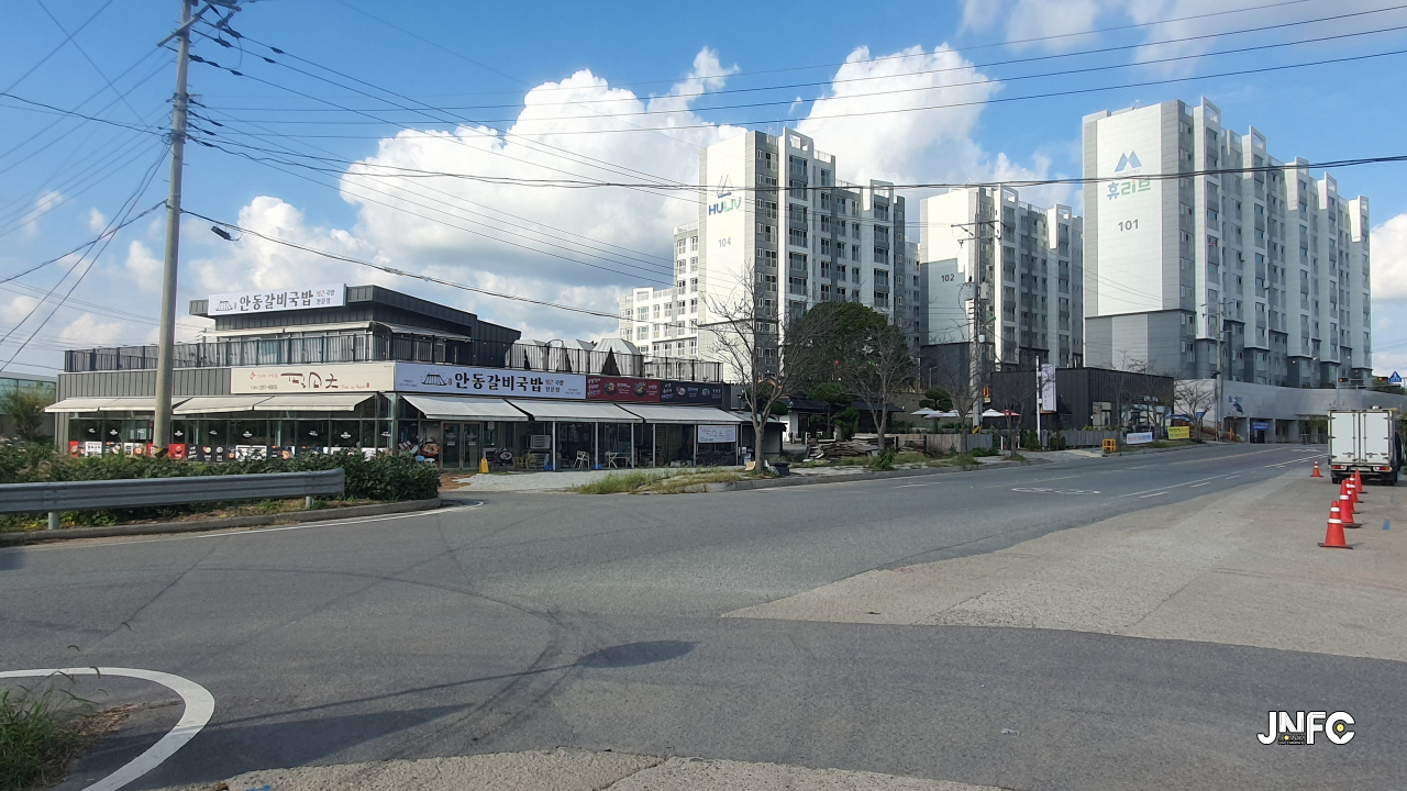 바로 옆에 큰 식당과 아파트 단지가 있다.